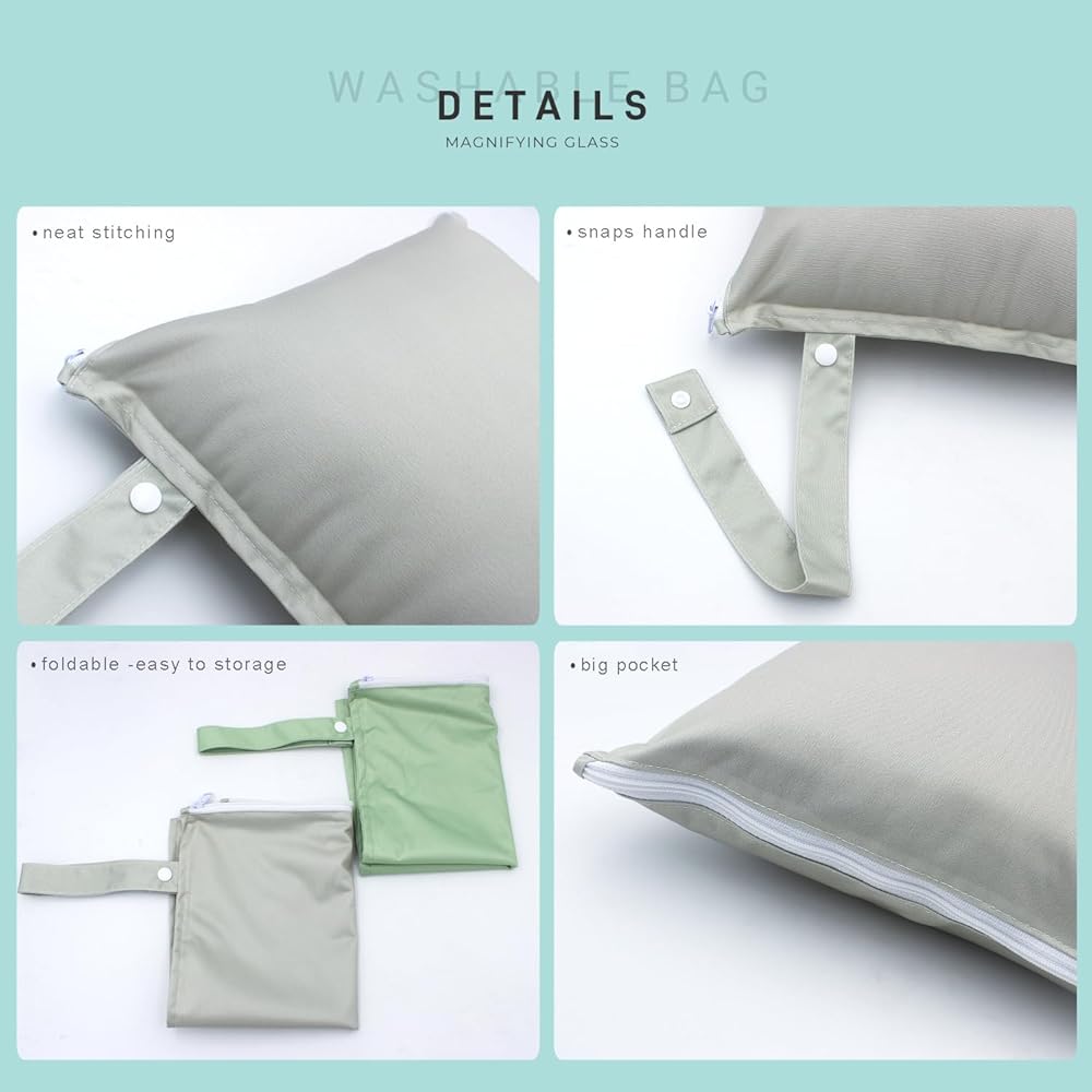 • Material: Outer layer of wet bags are knitted printed flat cloth, inner layer is attached with breathable and waterproof coating, soft to touch and silky feeling, safe to preserve baby products, not easy to break, light in weight, easy for you to take.