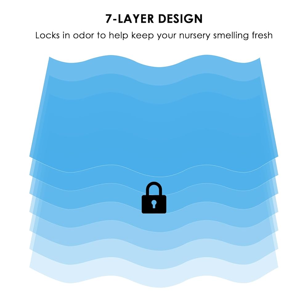 • حماية نقية للأماكن الحساسة: تنفس بسهولة مع تقنية OdorLock المتقدمة المكونة من 7 طبقات. توفر عبوات أكياس دلو الحفاضات الخاصة بنا احتواءً قويًا وخاليًا من الروائح من خلال حاجز مادي فائق، مما يجعلها مثالية لحديثي الولادة وأولئك الذين يعانون من حساسية تجاه العطور. كن مطمئنًا إلى أن غرفة طفلك تظل ملاذًا منعشًا وخاليًا من الروائح.