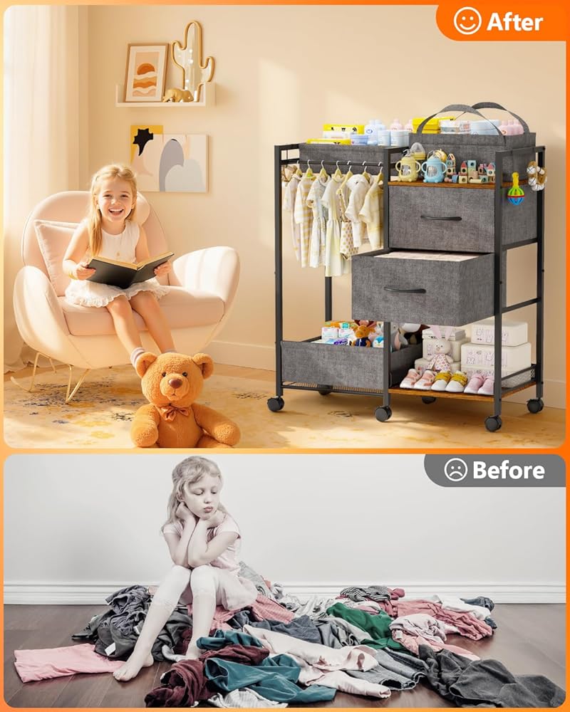 ينمو مع طفلك - أساسيات الحضانة الدائمة: هذا أكثر من مجرد منظم للأطفال؛ إنه حل تنظيمي مدى الحياة. ابدأ بعلبة الحفاضات وتخزين الألعاب، ثم قم بتحويلها إلى منظم كتب أو منظم ملابس أو عربة وجبات خفيفة مع نمو طفلك. إن تصميمه المتين ومتعدد الاستخدامات يجعله ضروريًا في كل مرحلة، مما يضمن بقاءه جزءًا قيمًا من منزلك لسنوات قادمة.