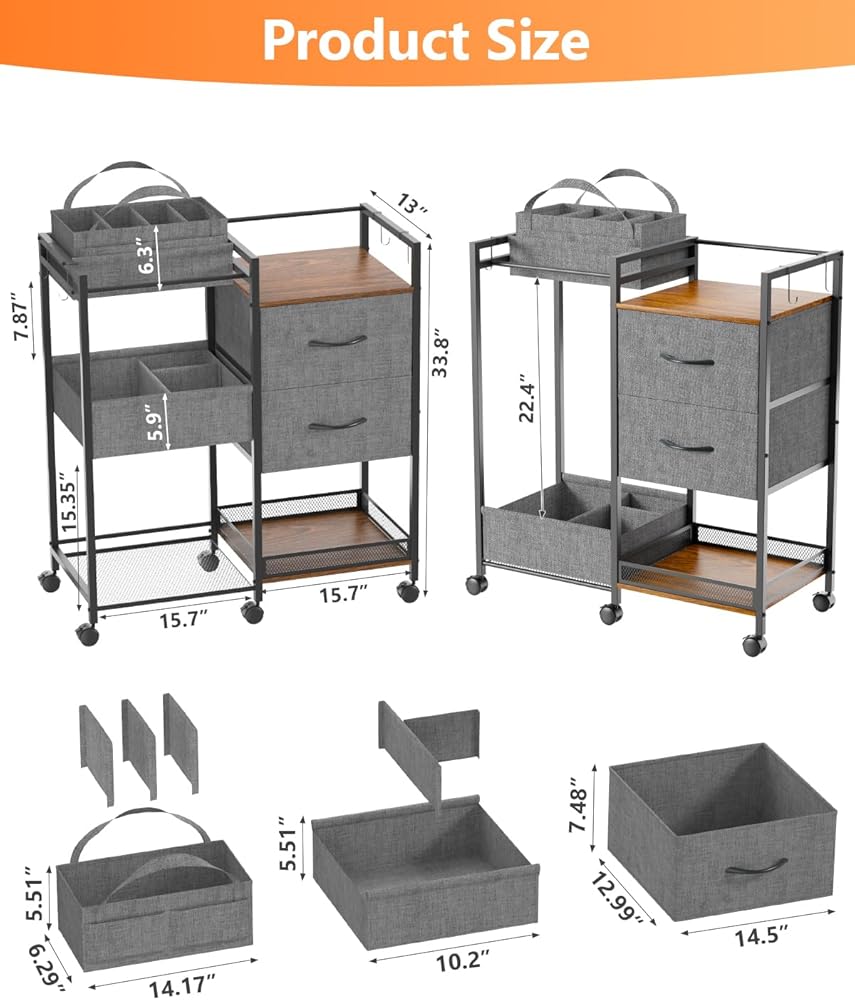 عربة ومنظم حفاضات الأطفال الكبيرة المطورة: مع إطار أطول مقاس 33.5 بوصة، توفر هذه العربة مساحة تخزين أكبر لجميع مستلزمات غرفة الأطفال الخاصة بك ومستلزمات الطفل. مثالية كمنظم لعلبة الحفاضات، أو عربة محطة تغيير الحفاضات، أو منظم تخزين الأطفال، فهي تحمل الحفاضات والمناديل المبللة والزجاجات والملابس والألعاب بشكل أنيق. أخيرًا، حل منظم وتخزين الكل في واحد لترتيب غرفة طفلك وإبقاء كل شيء في متناول الآباء المشغولين.