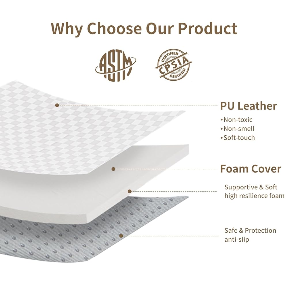جلد نباتي ناعم ومقاوم للماء: مصنوعة من جلد نباتي فاخر، هذه السجادة ناعمة ومقاومة للماء وسهلة التنظيف بالمسح. ما عليك سوى مسح الانسكابات أو اللعاب أو بقع الطعام في ثوانٍ - مما يجعلها مثالية للاستخدام اليومي والصيانة بدون فوضى.