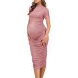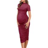 فستان ضيوف حفلات الزفاف شبه الرسمي للنساء مصنوع من نسيج فائق النعومة وقابل للتمدد، صديق للبشرة ومرن. يمكن أن يستوعب فستان الحمل ذو الحجم الكبير بطنك المتنامي في كل مرحلة من مراحل الحمل. تصميم مكشكش بشكل خاص، محبوب بشدة من قبل الأمهات العاملات والأمهات المقيمات في المنزل، وهو مثالي لما بعد الولادة/ما بعد الحمل