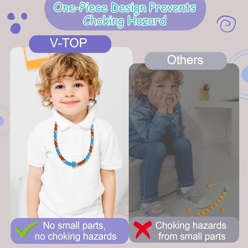تصميم آمن من قطعة واحدة - عقد التسنين الخاص بنا للأطفال الصغار مصنوع بنسبة 100% من السيليكون الصالح للطعام، وخالي من البيسفينول أ واللاتكس والفثالات والكادميوم والرصاص والمعادن، ويتميز بتصميم سلس من قطعة واحدة مع عدم وجود خطر سقوط الخرز، مما يجعله أكثر أمانًا في الاستخدام من قلادة خرز التسنين وقلادة الرضاعة الطبيعية المثالية.