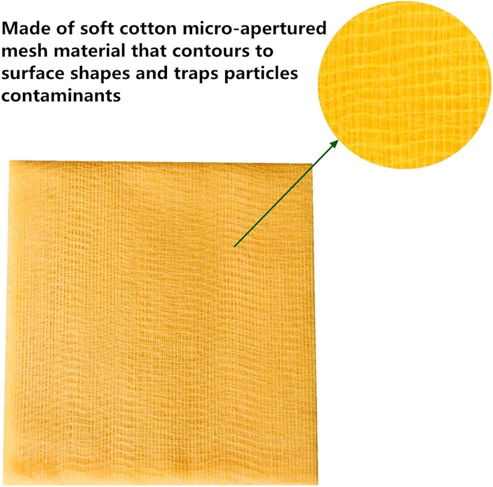 مصنوعة من مادة شبكية ذات فتحات دقيقة من القطن الناعم والتي تحيط بأشكال السطح وتحبس الملوثات الجزيئية،