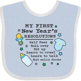 Your new baby is making a list of New Year's Resolutions, and they'll actually stick to them. My First New Years Resolutions with Baby Clip Art and Stars Baby Bib, perfect for newborns or babies celebrating their first New Year's Eve.