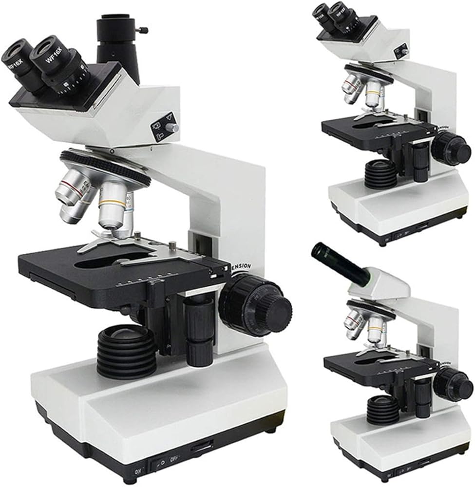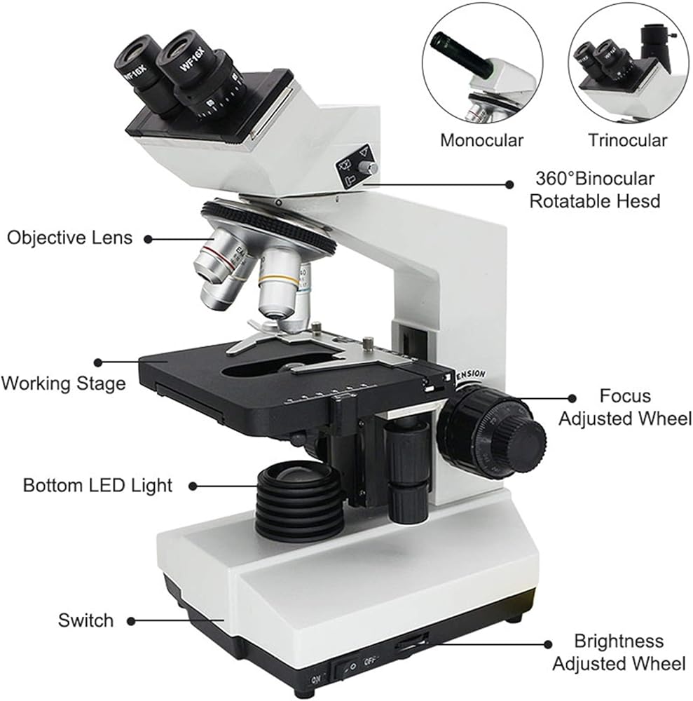 مجهر بيولوجي، مجهر أحادي العين ثلاثي العينيات LED 1600X f/مراقبة الأبحاث البيولوجية المختبرية لمختبر المدرسة، مجهر ثنائي العينين