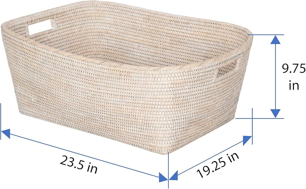 - الجزء العلوي: 23.5 بوصة طول × 19.25 بوصة عرض. الجزء السفلي: 20 بوصة طول × 13.5 بوصة عرض. ارتفاع 9.75 بوصة