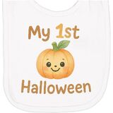 Celebrate your baby's first Halloween with this adorable smiling pumpkin Newborn Bib. Perfect for creating unforgettable memories.