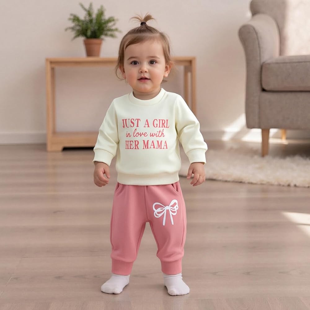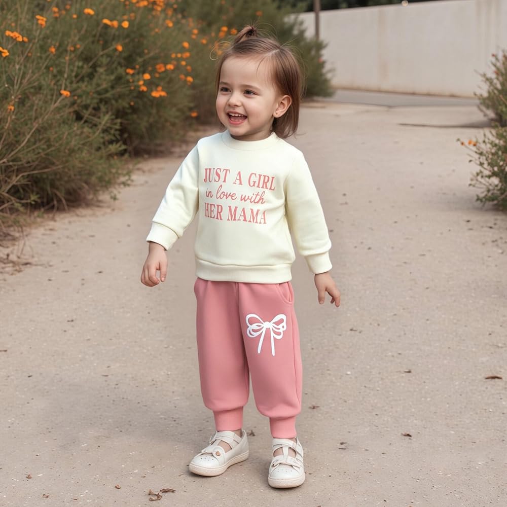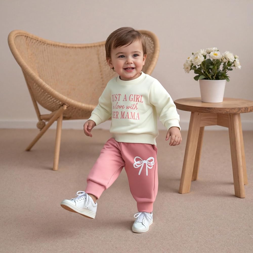 نسيج ناعم ومريح: ملابس للفتيات الصغيرات مكونة من قطعتين تتضمن سويت شيرت طويل الأكمام وبنطلون رياضي مطابق مصنوع من مزيج القطن الفاخر المسامي، مما يضمن الراحة طوال اليوم.