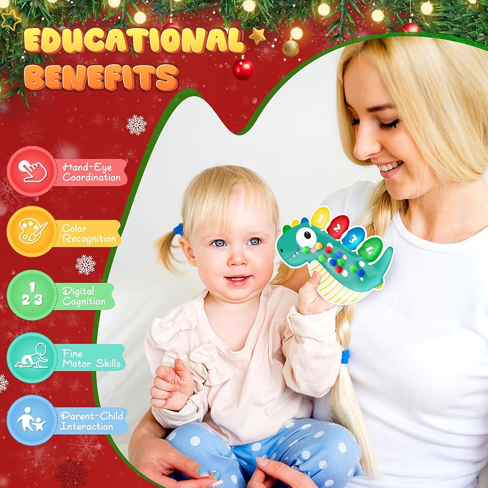 ألعاب فرز الألوان ذات المحرك الدقيق: ألعاب فرز ألوان عيد الميلاد التي تصنف الألوان عن طريق الضغط والضغط على خرزات مطاطية ملونة مختلفة ووضعها في اللون الصحيح لإكمال لعبة مطابقة الألوان. الأداة التعليمية مناسبة للأطفال الصغار الذين تتراوح أعمارهم بين 3 و4 و5 سنوات وتساعدهم على تعلم الألوان المختلفة والرياضيات المبكرة. من خلال لعب لعبة المطابقة، يمكن للأطفال الصغار تعزيز المهارات الحركية الدقيقة والتنسيق بين اليد والعين.
