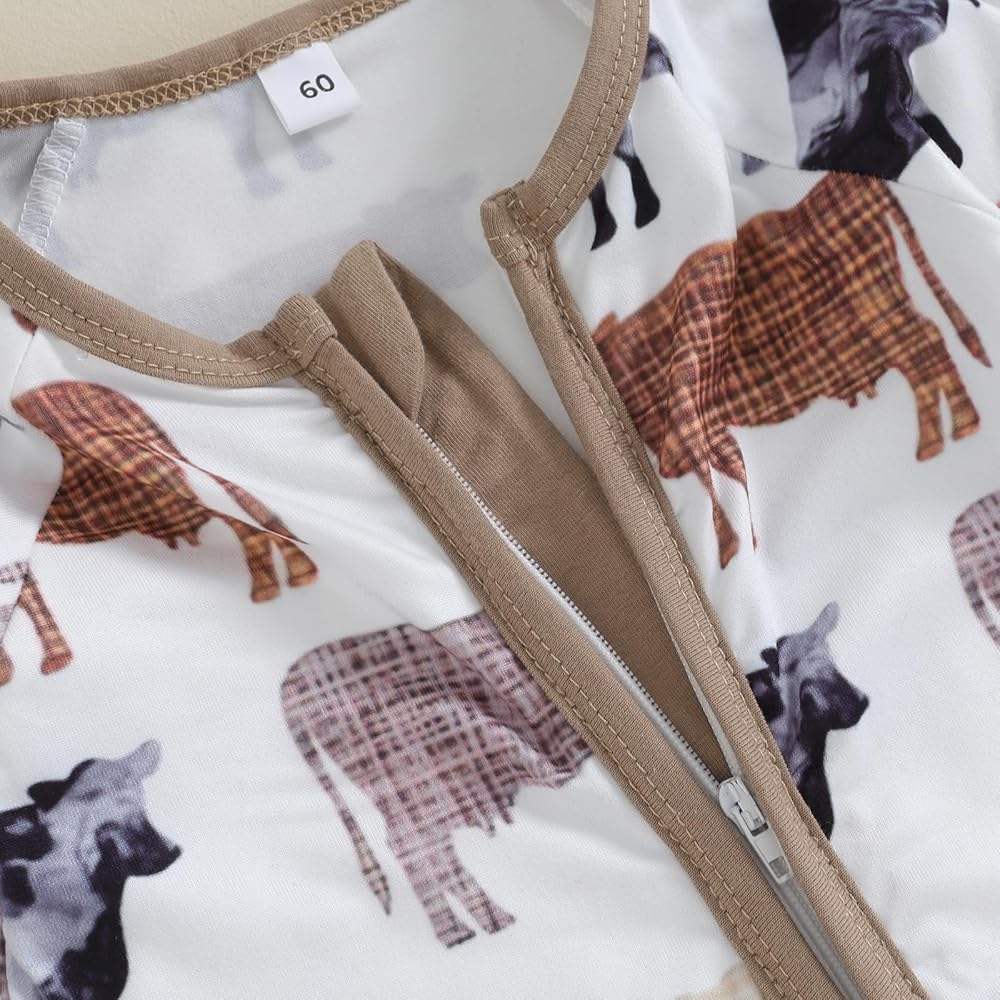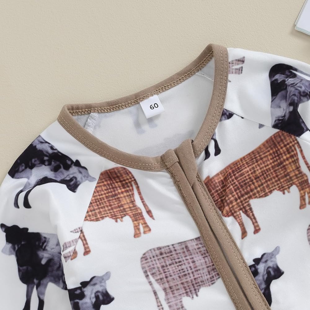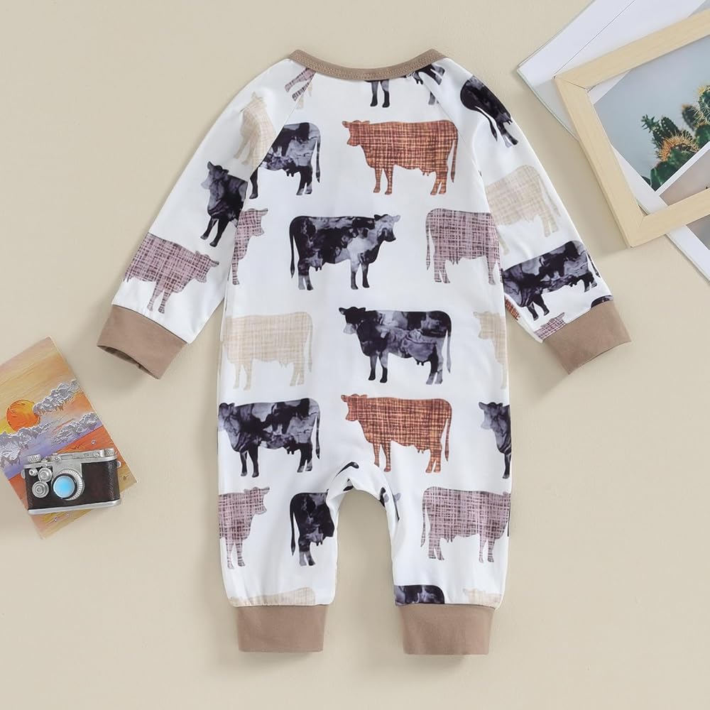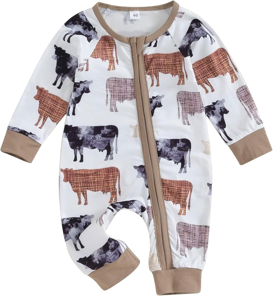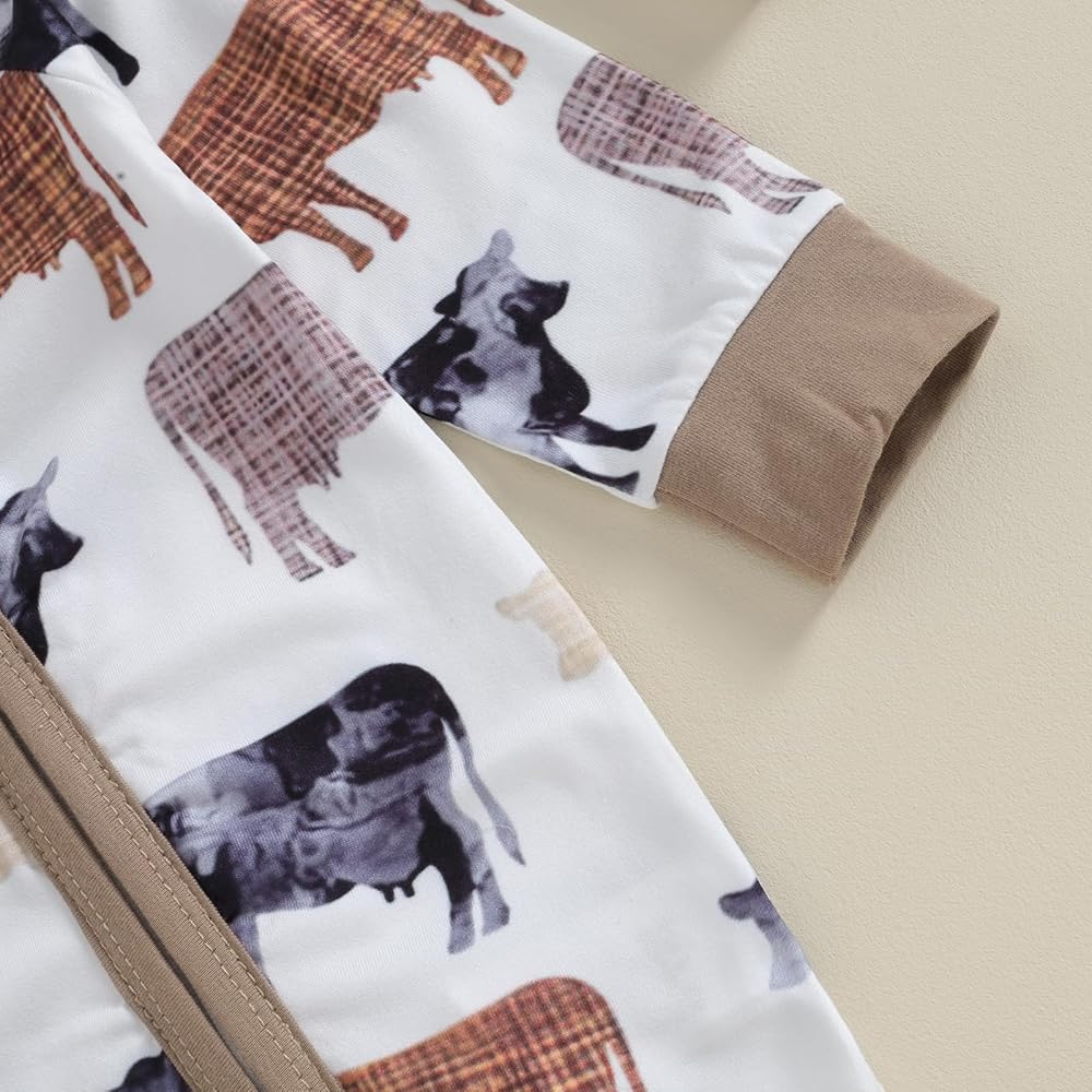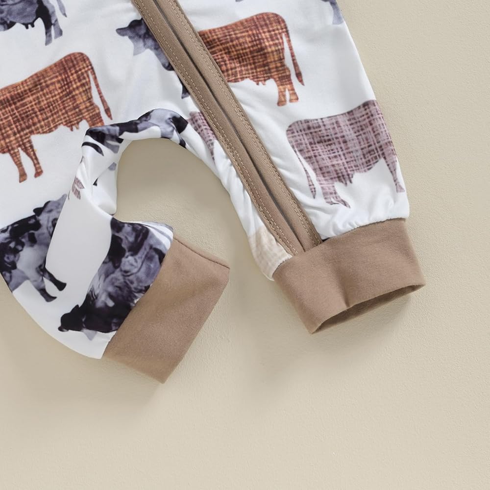 Western Baby Cowboy Clothes Neutral Long Sleeve Zipped Romper Fall Outfit Infant Boy Girl One-piece Jumpsuit Bodysuit
