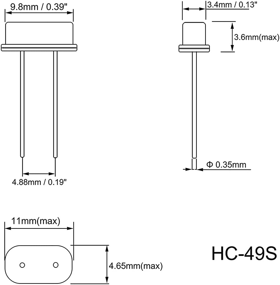 Body Size: 11 x 4.65 x 3.6mm / 0.43" x 0.18" x 0.14" (L*W*H); Lead Pitch: 4.88mm / 0.19"
