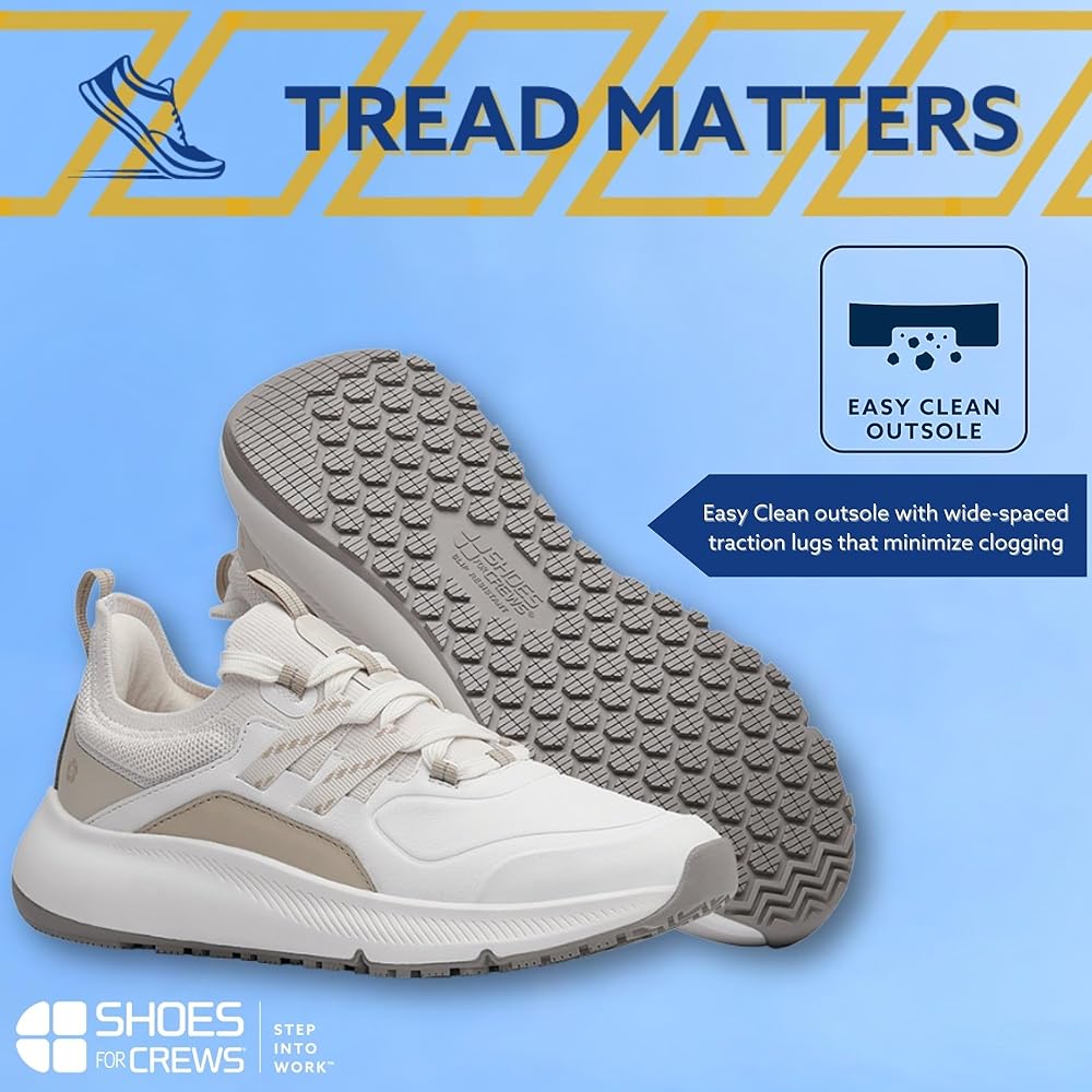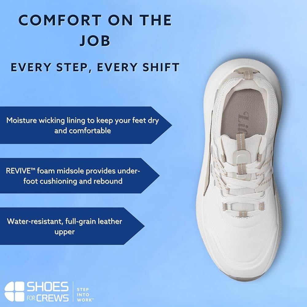 If you're looking for a new twist on the classic athletic silhouette, look no further than the Karina RX. Offering a more sophisticated style with its buttery soft full-grain leather upper, this work shoe is packed with the performance and safety needed to get you through a long workday. The stretch-fit upper hugs the foot and provides support while the REVIVE foam midsole provides under-foot cushioning and rebound. SFC's proprietary slip-resistant and clog-resistant EASY CLEAN outsole meets ASTM F2913-19 for slip resistance, kee