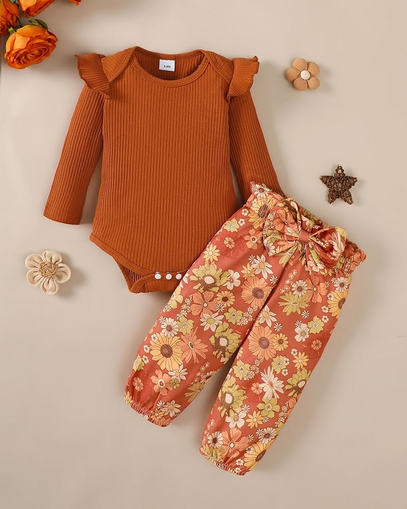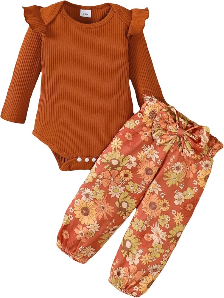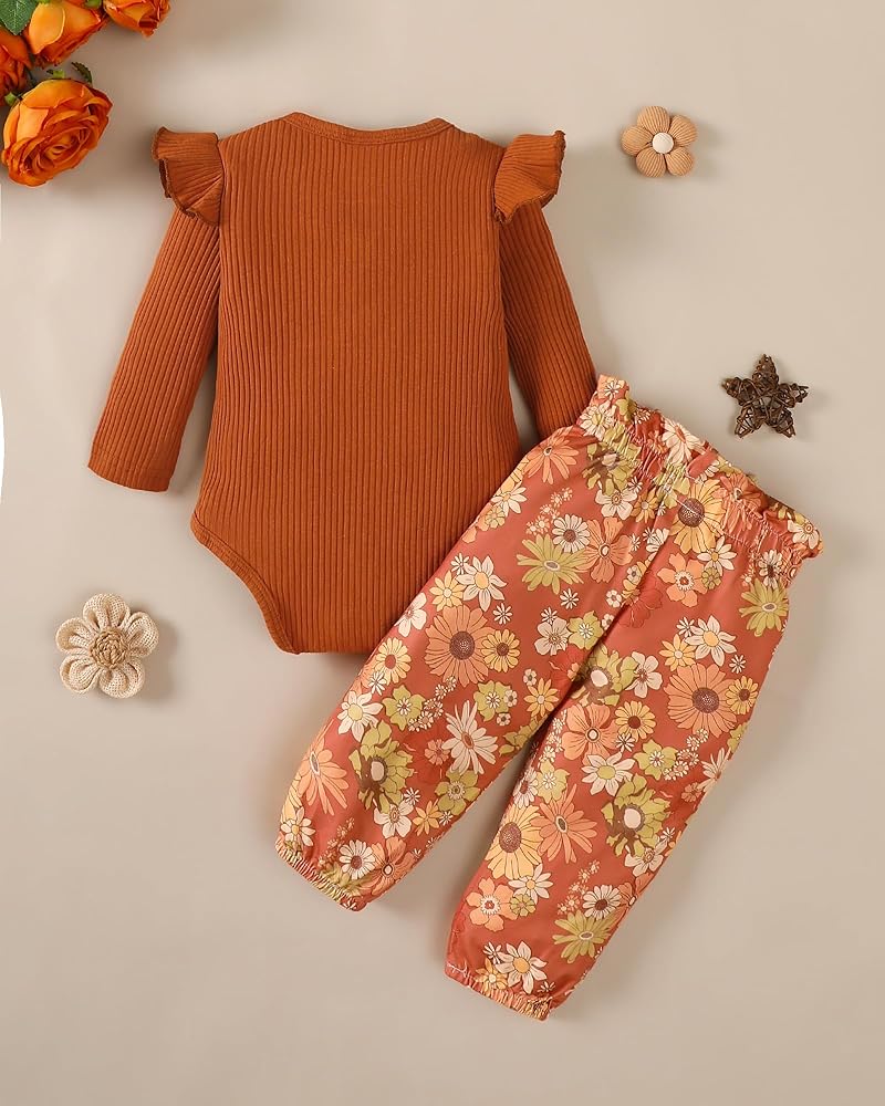 مجموعة ملابس للفتيات الصغيرات مصممة بإغلاق سريع لتغيير الحفاضات بسرعة وأكتاف مكشكشة لمزيد من السحر، هذا الرومبر يجعل الفتيات الصغيرات عملية وأنيقة للآباء المشغولين - مثالي لأيام الخريف والشتاء المنعشة.