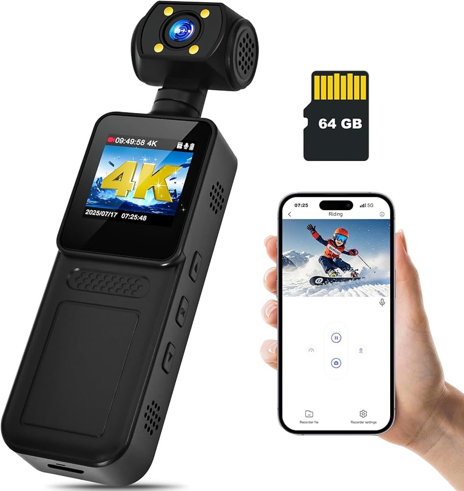 كاميرا الجسم بدقة 4K مع دعم WiFi للرؤية الليلية وعدسة قابلة للدوران 180 درجة كاميرا جيب صغيرة يمكن ارتداؤها كاميرا جيب فيديو وصوت للرياضة الخارجية والدراجة والسفر الشخصي المدني (64 جيجابايت)