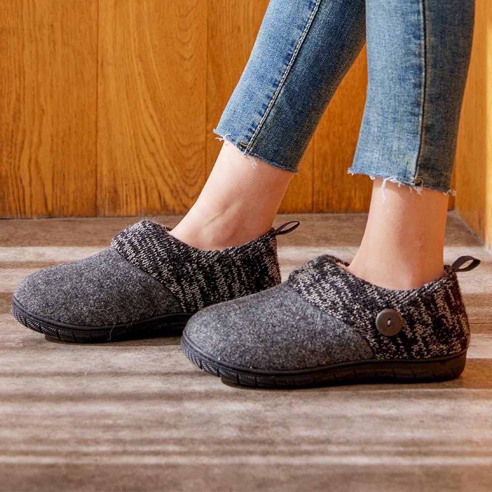 تصميم فريد من نوعه من اللباد والنسيج: تجمع هذه النعال بين نسيج ناعم يشبه اللباد مع ياقة متماسكة، مما يخلق تباينًا أنيقًا يمزج بين الراحة المريحة والسحر الحديث. مبطنة بالكامل بالصوف الناعم، تحبس هذه الشباشب الدفء وتوفر الراحة طوال اليوم خلال المواسم الباردة.