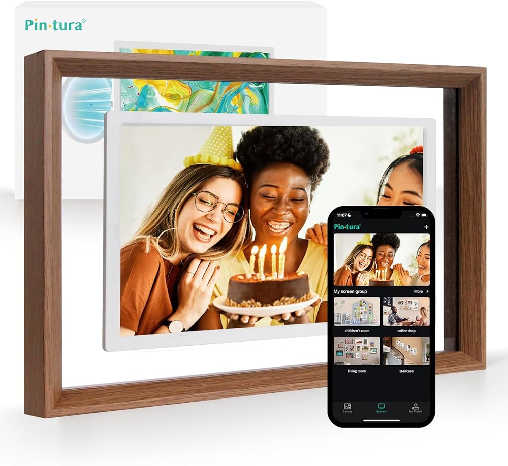 PINTURA 10.1" WiFi Digital Picture Frame – 1080p HD, Magnetic Wall Mount, 64GB+8GB Cloud – Perfect Gift for Holidays & Family Bring memories to life with the 10.1" PINTURA Smart Frame, designed for effortless sharing and timeless displays. 720p HD IPS Clarity: 1280x1080 resolution & 178° ultra-wide viewing angle showcase crisp photos and 15-second videos, ideal for holiday gatherings or anniversary collages. Tool-Free Magnetic Mounting: Rotate 360° horizontally/vertically with no nails—perfect for kitchens, dorm rooms, or Christmas mantels. Instant Sharing & Secure Storage: Send photos/videos via the Pintura App (iOS/Android) to family worldwide. 64GB internal + 8GB free cloud holds 40,000+ memories. Invite-only access protects wedding albums or kids' milestones. Smart Controls & Dual Wi-Fi: Auto-rotate photos, schedule brightness for festive nights, and manage multiple frames remotely via 2.4G/5G networks. Gift-Ready in Minutes: Pre-load a surprise proposal video or "Family Yearbook" slideshow. Sleek black frame with wall/desk mounts—no subscriptions, just joy