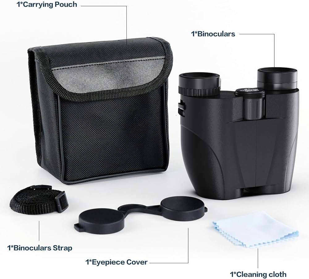 وضوح عالي الطاقة: منظار 20 × 25 مع عدسات مقاس 15 مم، مجال رؤية واسع، يوفر وضوحًا عاليًا، بدون تشويه الألوان أو صور ضبابية. مثالية لمشاهدة الطيور لمسافات طويلة والاستمتاع بتفاصيل الحفل والمغامرات الخارجية.