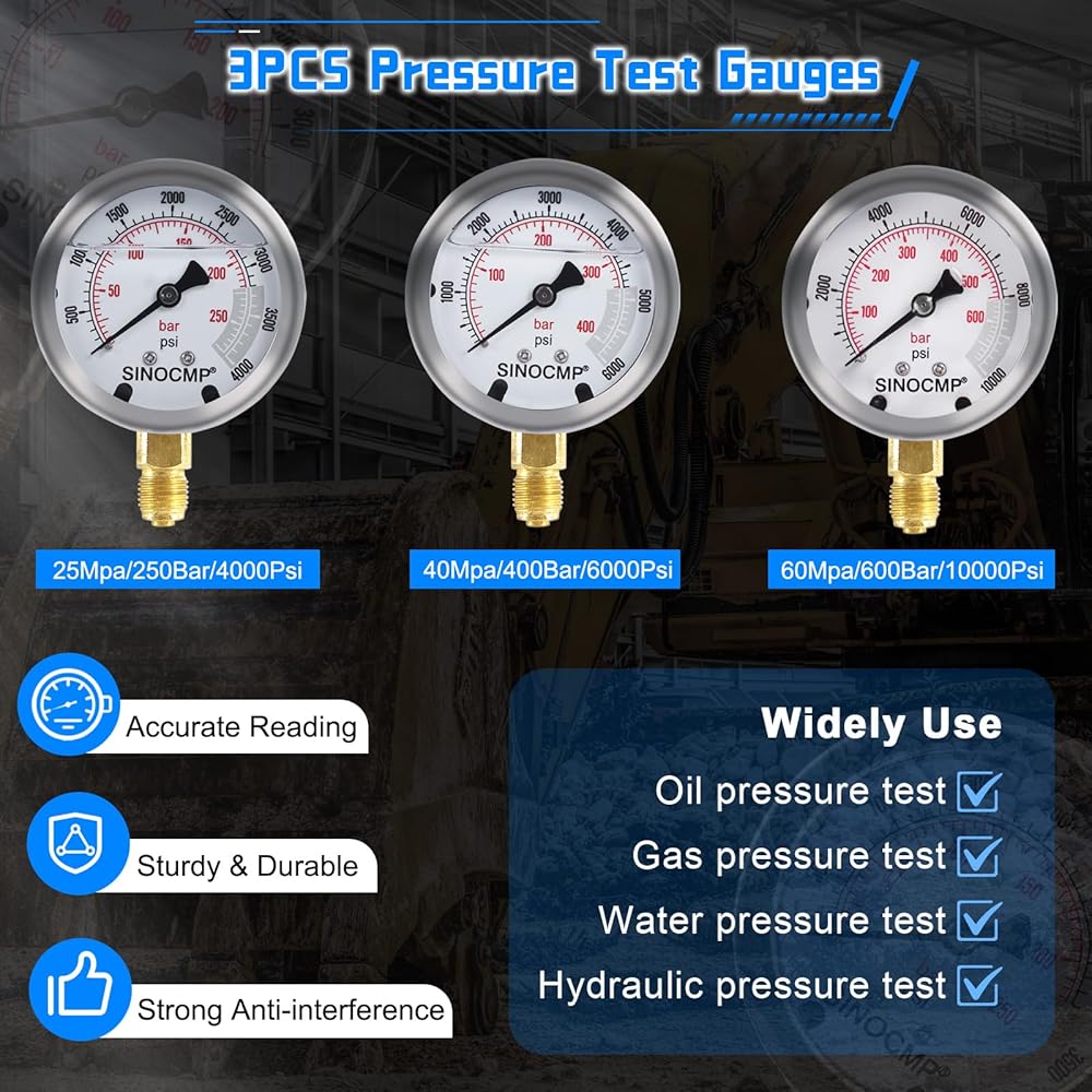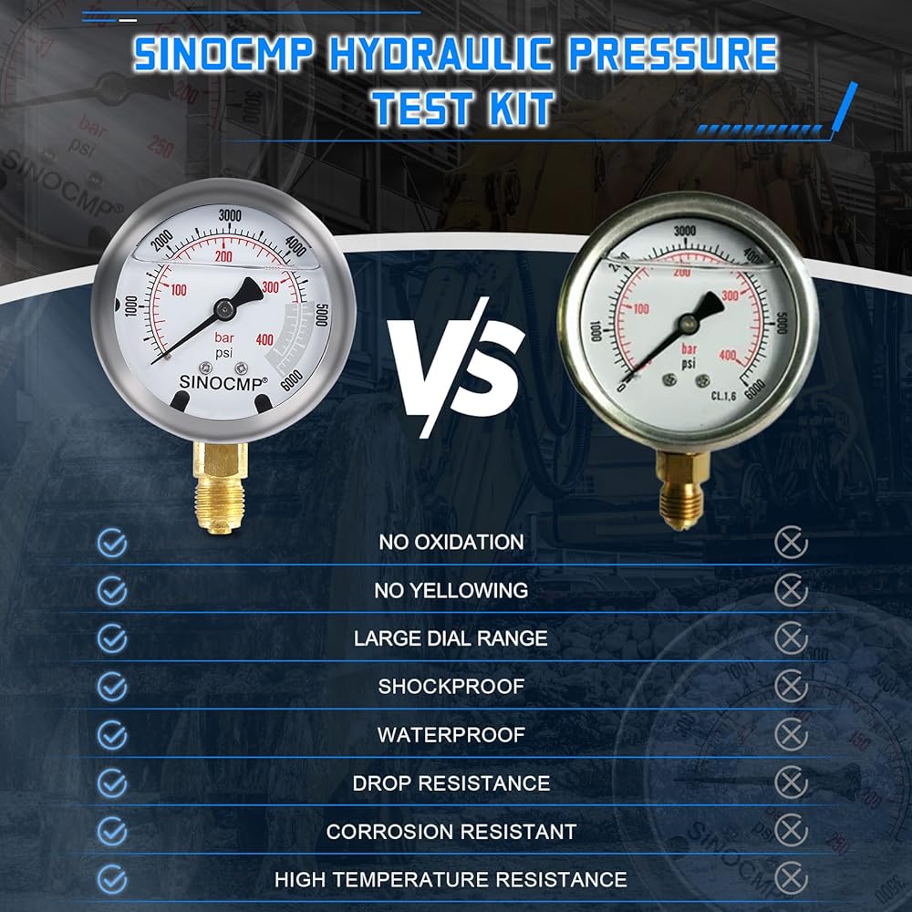 قطع الحفارات من سينوسي ام بي مقياس الضغط الهيدروليكي طقم حفارة مقياس اختبار هيدروليكي خراطيم المعدات الهيدروليكية مقاييس الاختبار الهيدروليكي تستخدم للحفارات