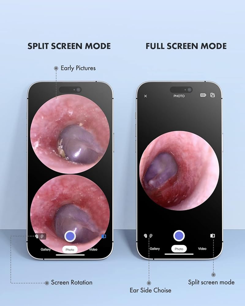 قارن الصور وتتبع حالة الأذن من خلال وضعي عرض واختيار ذكي لجانب الأذن - في وضع تقسيم الشاشة، يمكنك بسهولة مقارنة الصور السابقة مع العرض في الوقت الفعلي لمراقبة صحة الأذن
