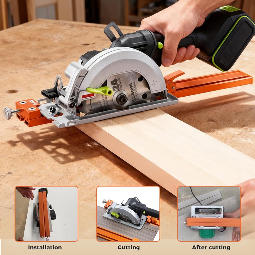 تركيب سريع: يتميز دليل المنشار الدائري إمبوت بأنه صغير الحجم وخفيف الوزن، ويتميز برقصة سريعة التركيب تسمح لك بتثبيته بدون أدوات وبدء القطع في غضون ثوانٍ. يعد دليل المنشار الدائري هذا مثاليًا للمحترفين والذين يقومون بذلك بنفسك، حيث يزيل هدر المواد والتخمين، ويزيد من سرعة سير العمل للأرضيات والأثاث وإعادة التصميم.