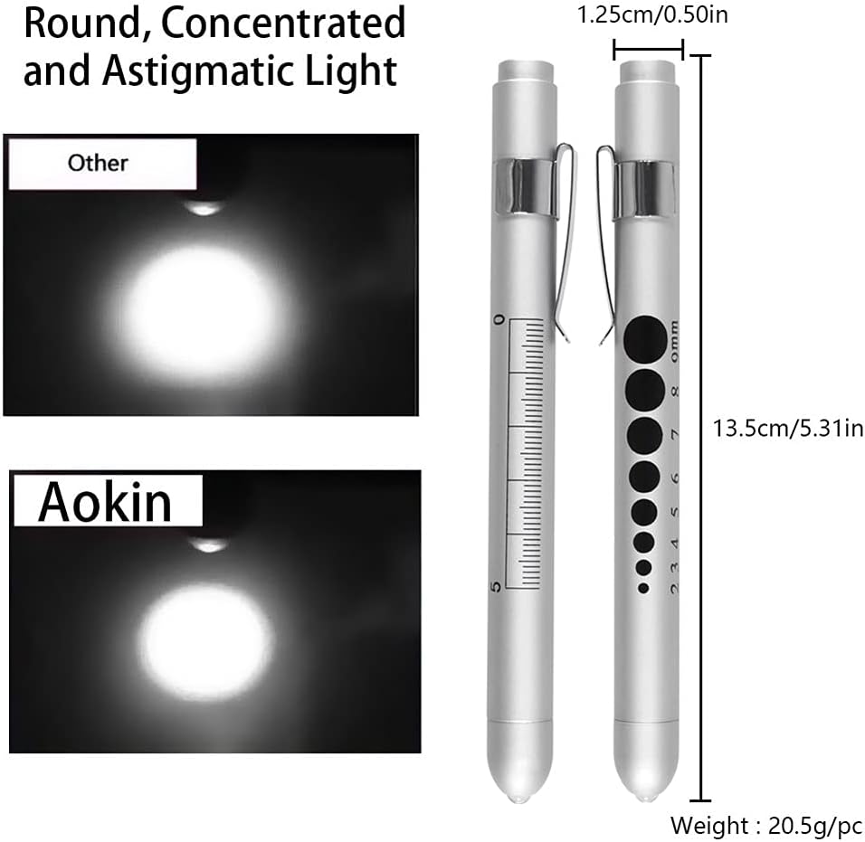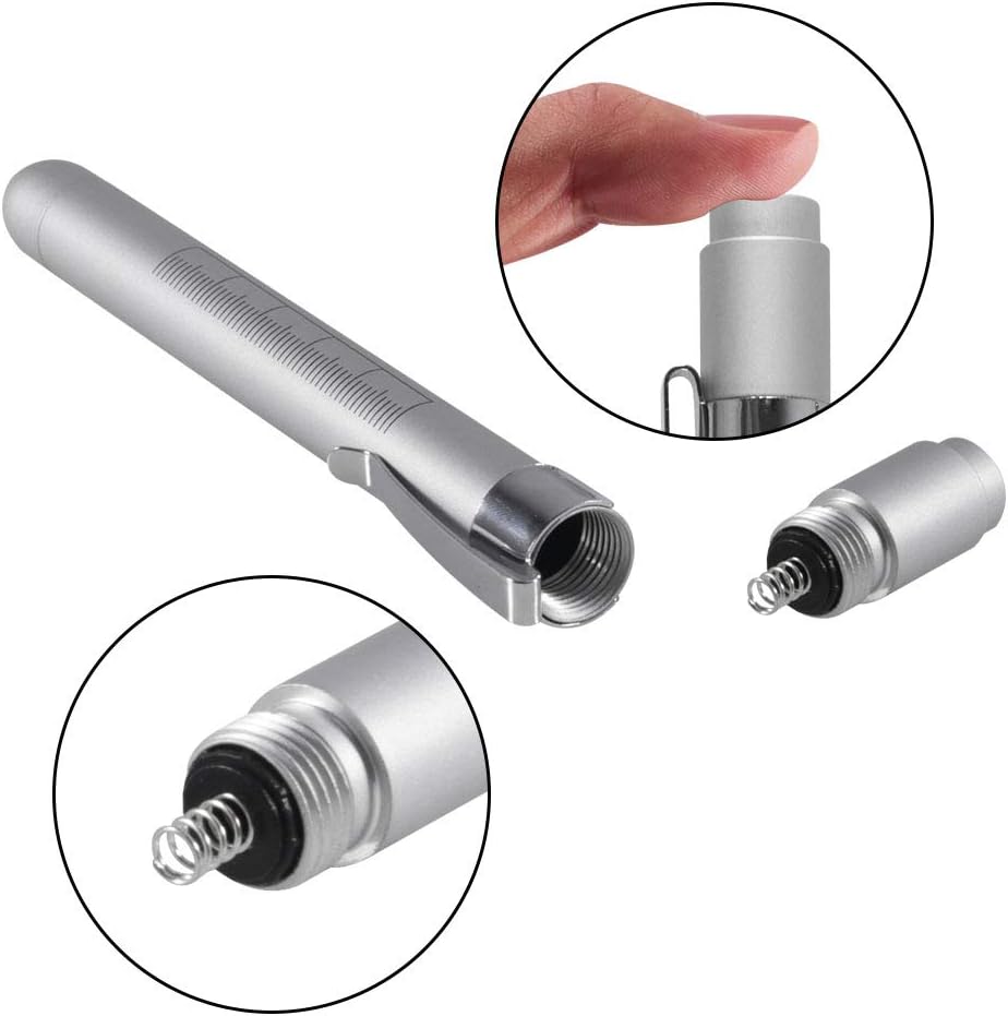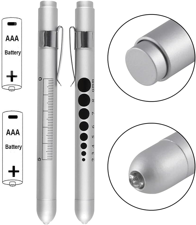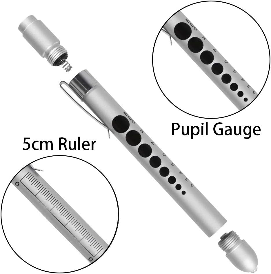 الميزة: يوجد مقياس حدقة العين ومسطرة 5 سم على جانب ضوء القلم، للمساعدة في تحديد حجم حدقة المريض عند إجراء تقييم عصبي وعمل الأطباء أو الممرضات اليومي.