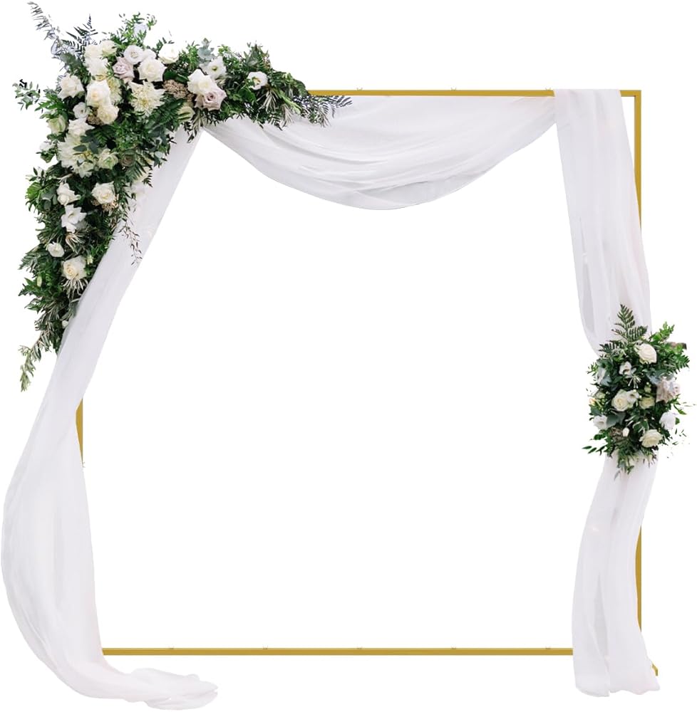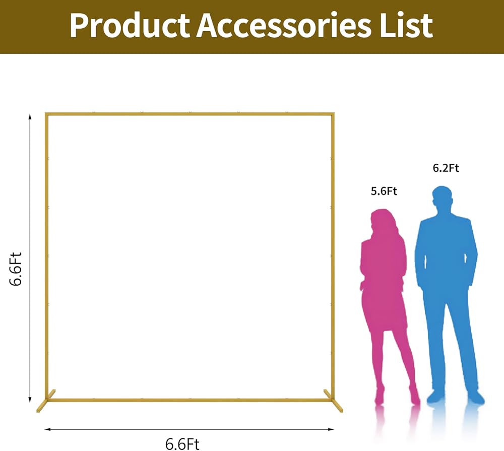 حامل معدني لخلفية الزفاف مقاس 6.6أقدام × 6.6أقدام، حامل إطار بالون مربع مع قاعدة، أقواس للخلفية، احتفالات أعياد الميلاد في الأماكن المغلقة، والحفلات، باللون الذهبي