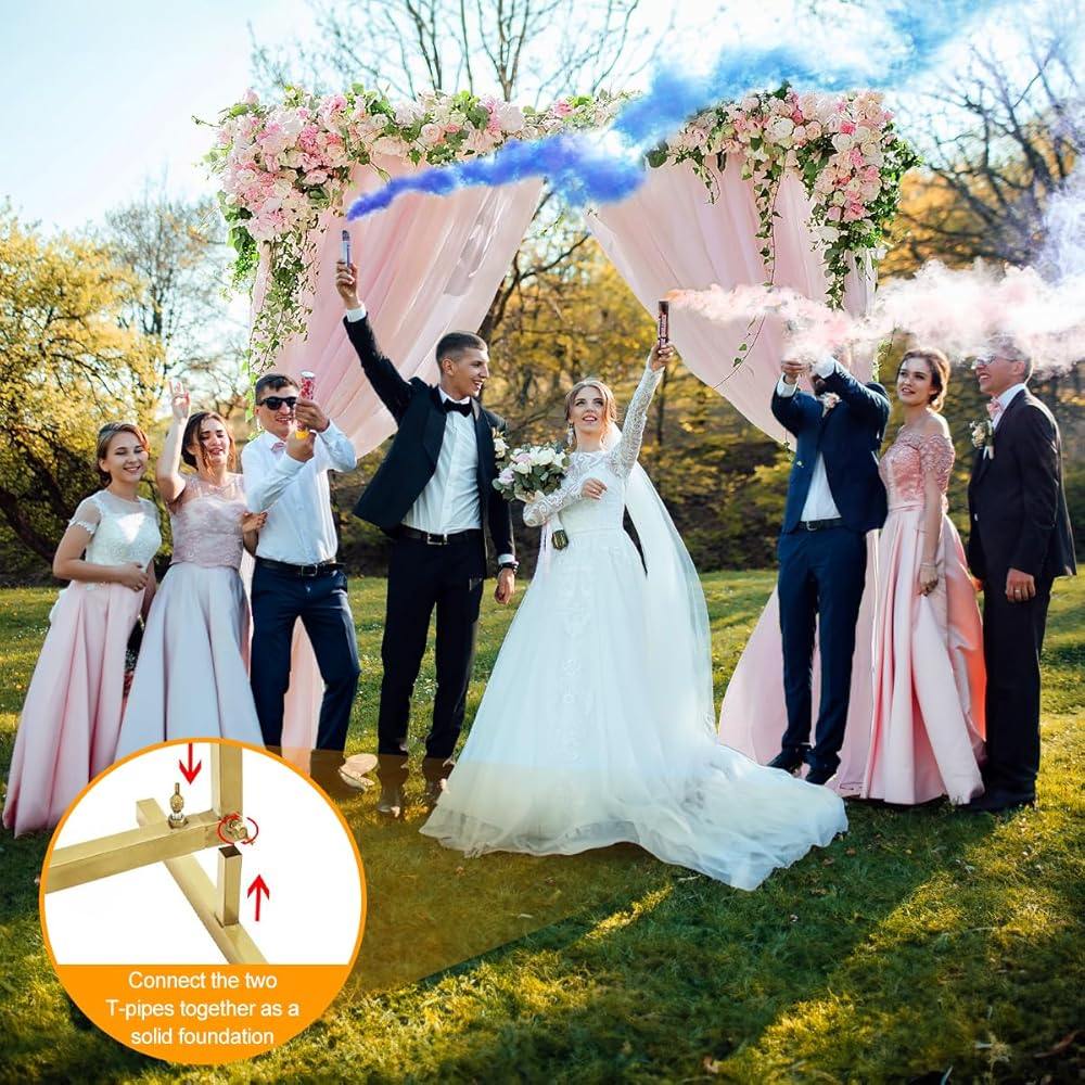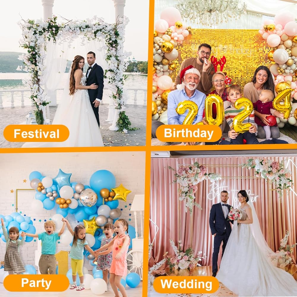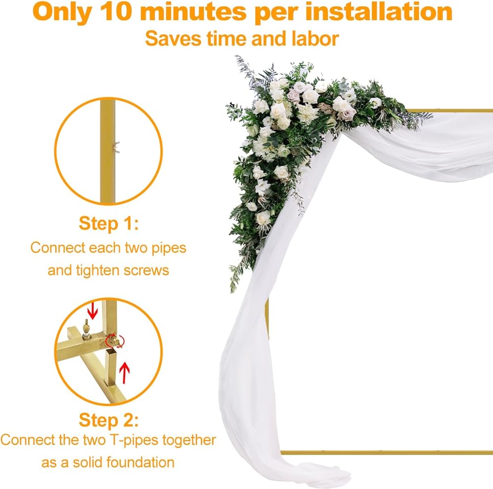 Gold Wedding Arch Backdrop Stand, Balloon Arched Frame Stand with Wedding Arch Cover Spandex