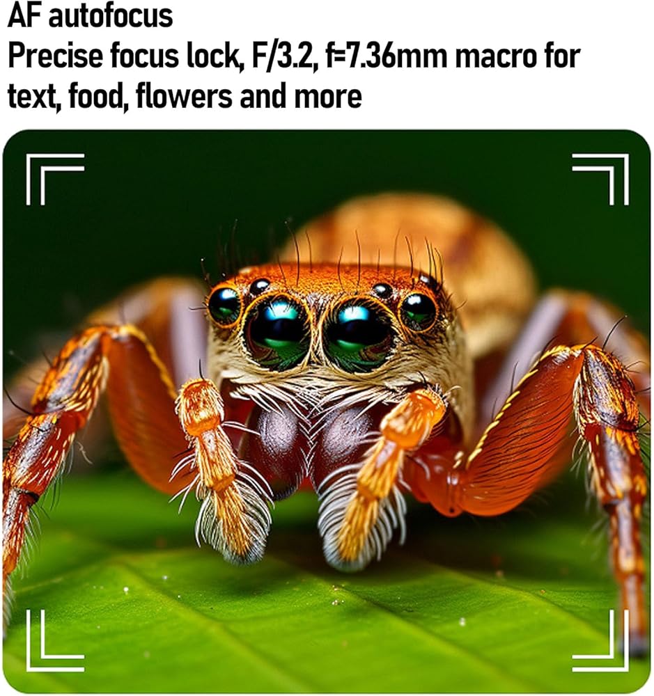 إطار التركيز البؤري التلقائي المتقدم: قم بالتقاط التفاصيل المعقدة على الفور - النص والزهور والطعام - باستخدام التكنولوجيا. يتضمن ضوء فلاش للوضوح في الإضاءة المنخفضة.