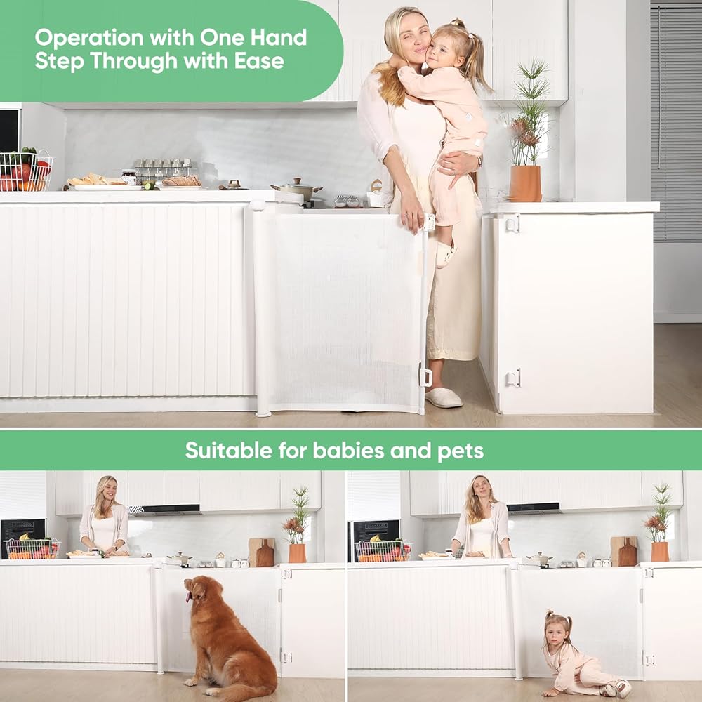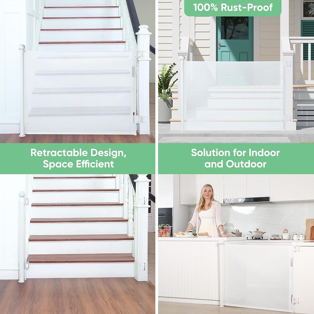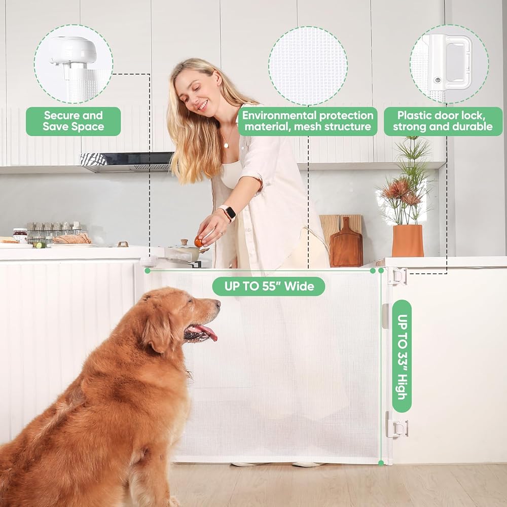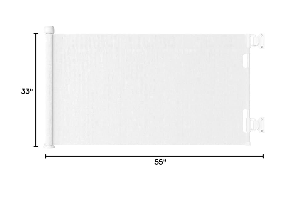 بوابة أطفال قابلة للسحب من Likzest، شبكة وبوابة للحيوانات الأليفة بطول 33 بوصة، تمتد حتى عرض 55 بوصة، بوابات أمان للأطفال لممرات مداخل السلالم، للكلاب والقطط في الأماكن المغلقة والخارجية (أبيض)، 6*18، SH20.006DC