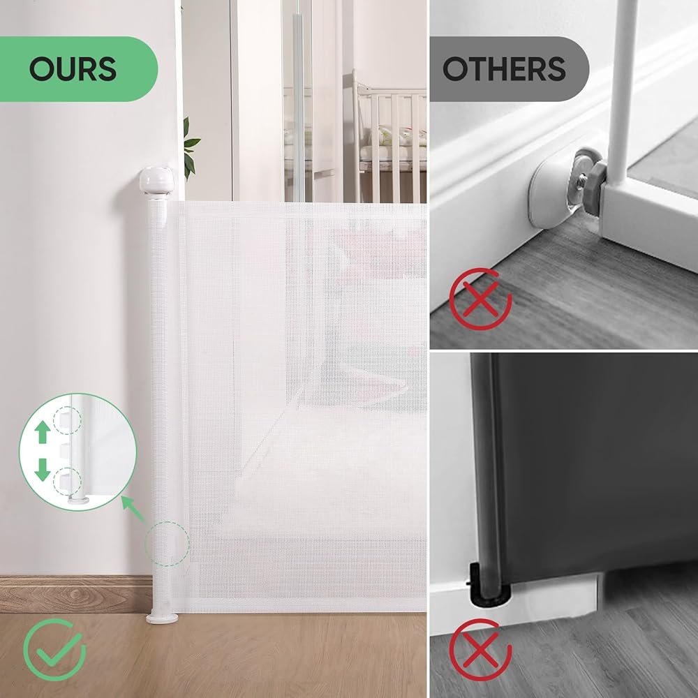 【بوابة شبكية صديقة】المادة الشبكية المستخدمة في بوابة الأطفال الخاصة بنا ناعمة ولطيفة بشكل استثنائي، مما يقلل من خطر الإصابات العرضية أثناء اللعب. على عكس البوابات التقليدية التي تحتوي على درابزين سفلي، فإن بوابات الحيوانات الأليفة الخاصة بنا للكلاب تتجنب أي مخاطر محتملة للرحلات، مما يسمح لك بالتنقل دون عناء، حتى عندما تكون يديك مشغولتين. نحن ندرك أهمية إعطاء الأولوية لسلامة طفلك، ولهذا السبب قمنا بتصميم هذه البوابة لتكون الخيار الأفضل للآباء مثلك