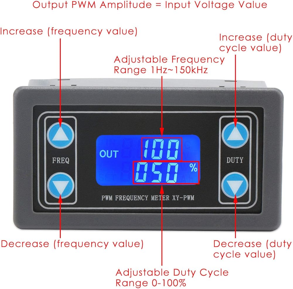 ميزات أخرى ---- مع شاشة LCD لعرض قيمة التردد ودورة العمل؛ مع حالة؛ مخرج PWM، يمكن ضبط التردد ودورة العمل بشكل منفصل عن طريق الأزرار؛ تنقسم قيمة التردد إلى 4 نطاقات ويتم تشغيلها تلقائيًا بدقة عالية.