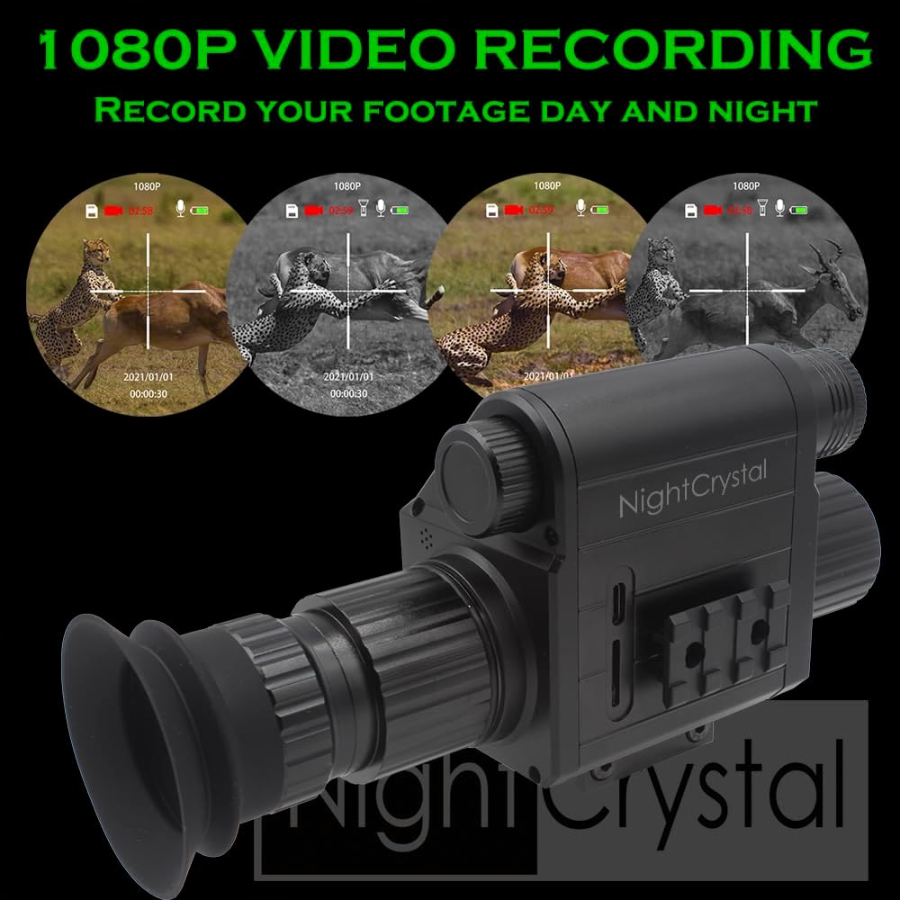 1080p Tactical Hunting Night Vision Scope Video Camera Monocular DVR with Built-in Infrared IR Flashlight OLED HD Screen Display with Adjustable Crosshairs Digital Zoom Recoil Proof