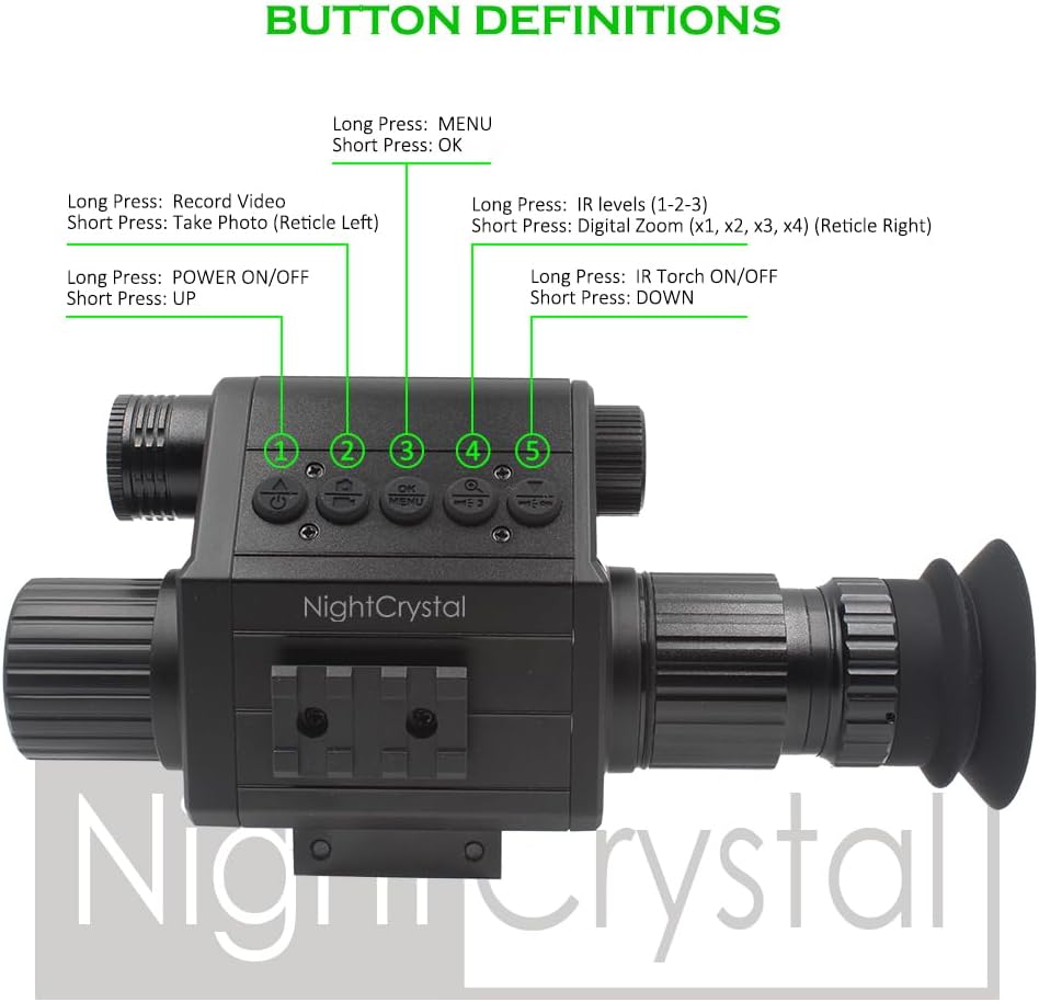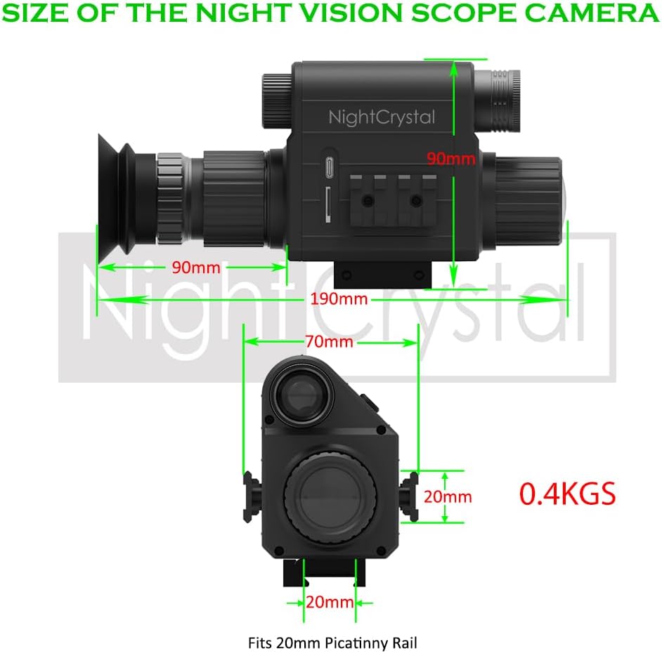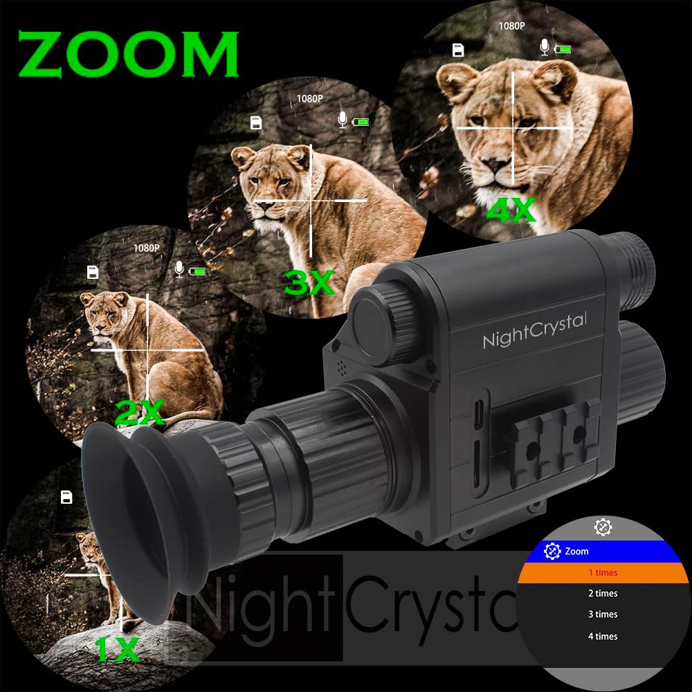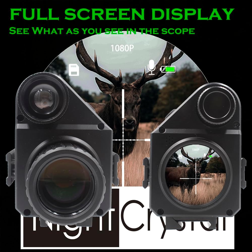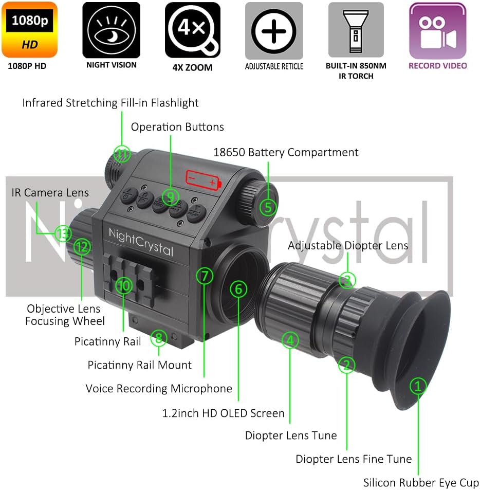 1x Night Vision Scope Camera (1080 HD, Day/Night Vision, Adjustable Focus, Adjustable Diopter Lens, 1.2inch HD OLED Screen, 1x-4x Digital Zoom, Adjustable Crosshair, 21mm Picatinny Rail Mount, Picatinny Rail Plugs-in Both Sides)