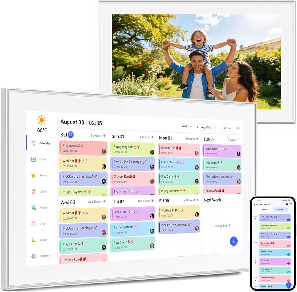 ✍مركز قيادة العائلة الذكي الخاص بك: يعمل هذا التقويم الرقمي بشاشة اللمس عالية الدقة مقاس 10.1 بوصة والمتصل بشبكة WiFi على مركزية جدول عائلتك. قم بتعيين المهام والأعمال المرمزة بالألوان لكل عضو للحصول على رؤية واضحة ومسؤولية. يمكنك عرض خطط الجميع وتحريرها ومشاركتها بسلاسة على شاشة واحدة بديهية.