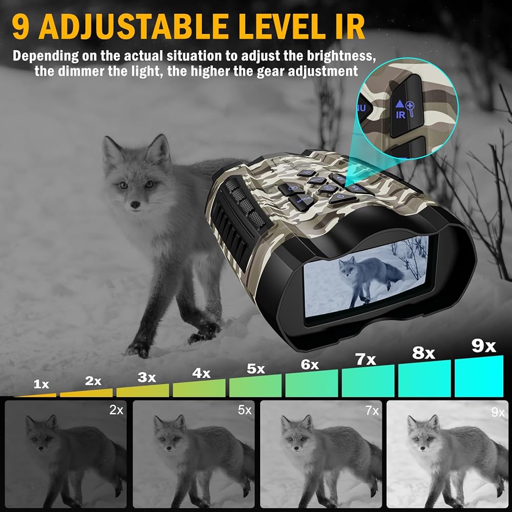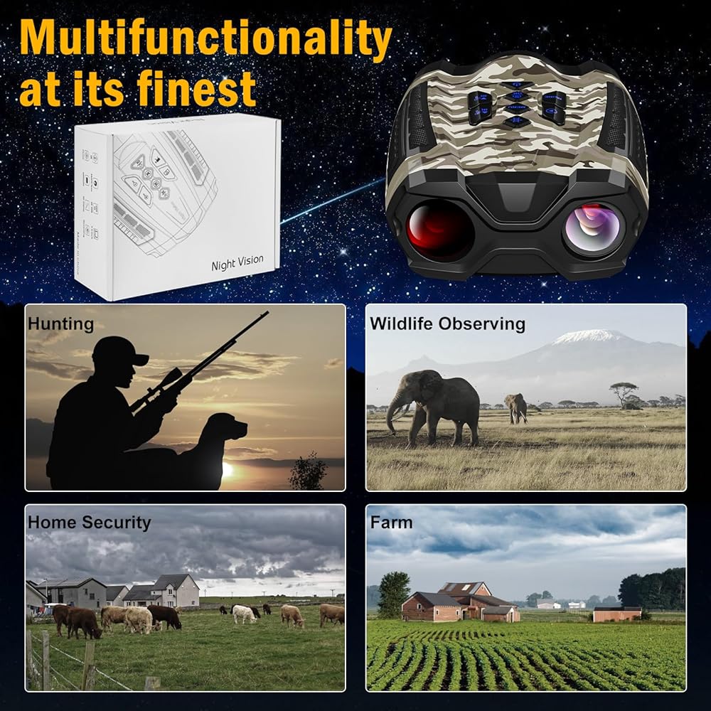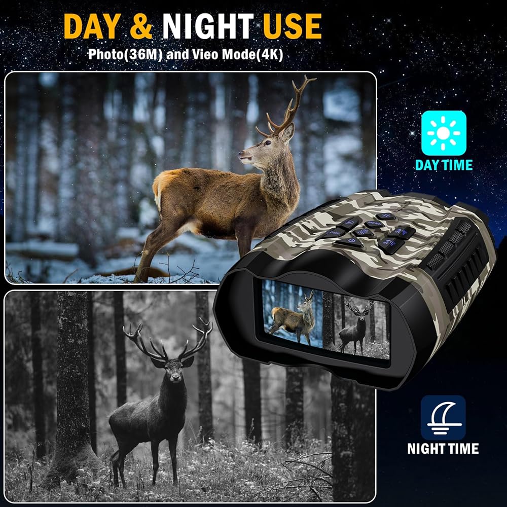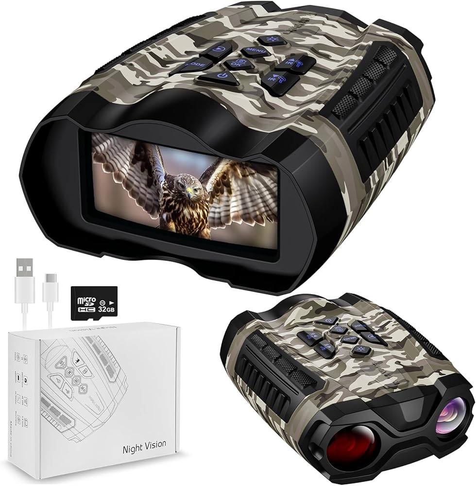 The WISHBETY 4K Night Vision Binoculars & Goggles is a high-performance night vision device designed for nighttime adventures, wildlife observation, and outdoor activities. This product features 4K HD night vision imaging, infrared technology, and a variety of practical functions to enhance your vision and experience in challenging environments. Here are the key features and design highlights: 4K HD Imaging: Equipped with cutting-edge 4K Ultra HD imaging technology, this device ensures sharp and clear visuals both day and night. Whether you're capturing fine details or observing a wide field of view, 4K resolution greatly enhances your experience, making it ideal for outdoor exploration and wildlife watching. 3.5-inch HD Display: The built-in 3.5" HD screen allows you to view captured photos and videos in real-time, no external devices needed. This makes operation easier and more convenient, especially in low-light conditions, allowing you to review and manage footage on the spot. 9-Level Infrared Adjustment: This device offers 9 levels of infrared adjustment to adapt to various lighting conditions, from low light to complete darkness. This feature ensures that you maintain a clear field of view, even in pitch-black environments, making it perfect for wildlife observation or outdoor exploration. 10X Digital Zoom: The 10X digital zoom feature allows you to easily capture distant scenes or targets, making it perfect for long-range observation in the wild. With this zoom function, you can see both the big picture and the finer details up close. 32GB TF Card Storage: With a built-in 32GB TF card, this night vision device offers ample storage for your high-quality videos and photos, you can connect the night vision scope to your PC using the USB cable to transmit data, eliminating the need to constantly swap out memory cards. Durable and portable design: This device is designed for outdoor adventures in harsh environments and is made of high-toughness ABS material to ensure reliable performance in harsh weather and extreme conditions. Its durable design and ergonomic shape offer both protection and comfort, giving you a secure grip during use.With the neck strap, you can hang the night vision device around your neck, making it more convenient to carry. Versatile Applications: The WISHBETY night vision device is perfect for a variety of outdoor activities, including camping, nighttime exploration, night fishing, wildlife observation, and nighttime security. Whether you're a hobbyist or a professional, this device offers convenience and a high-quality experience. Product Specifications: Display: 3.5 Inch HD IPS Screen Video Resolution: 4K Max(Adjustable) Photo Resolution:36MP(Adjustable) Storage: 32GB TF Card(Built-in) Infrared Levels: 9 levels of infrared adjustment Night Vision Range: 300M Max Digital Zoom: 10X Battery Type: Rechargeable lithium battery (4000mAh) Battery Life: 3-12 hours continuous use(Different modes will be different) Weight: 634±30g Product Dimensions: 22.2 x 17.6 x 8.3 cm Material: Durable ABS plastic Operating Temperature: -20°C to 60°C Included Accessories: 1x 4K Night Vision Binoculars,1 x USB charging cable,1 x case,1 x user manual,1 x 32GB TF card(Built-in),1 x Neck Strap
