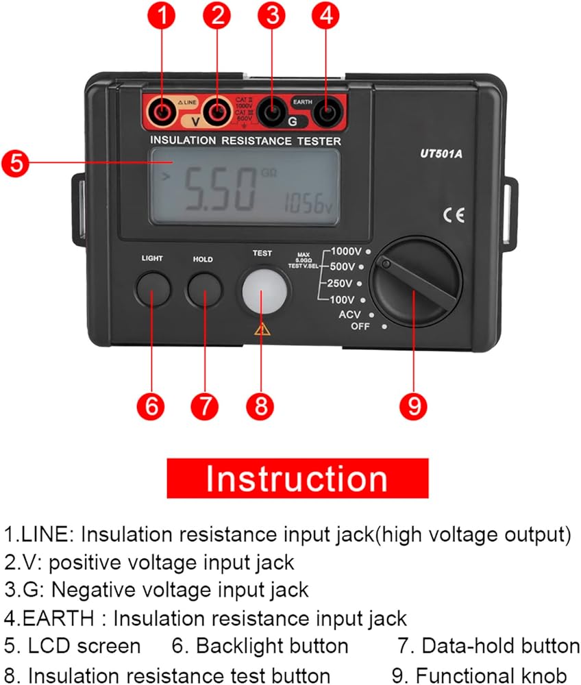 جهاز اختبار المقاومة الأرضية الرقمية UT501A 1000 فولت جهاز اختبار مقاومة العزل الأرض المقاومة الأرضية جهاز قياس المقاومة الأرضية المتعدد الفولتميتر جهاز اختبار مقاومة الأرض