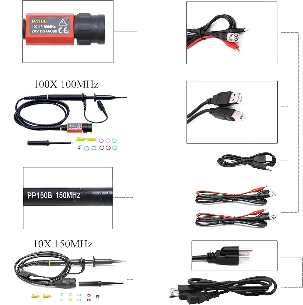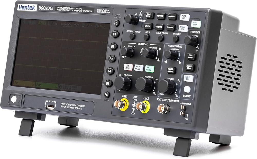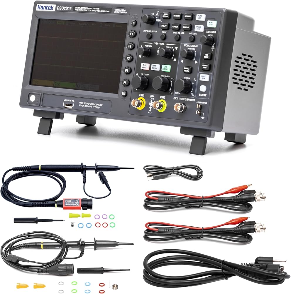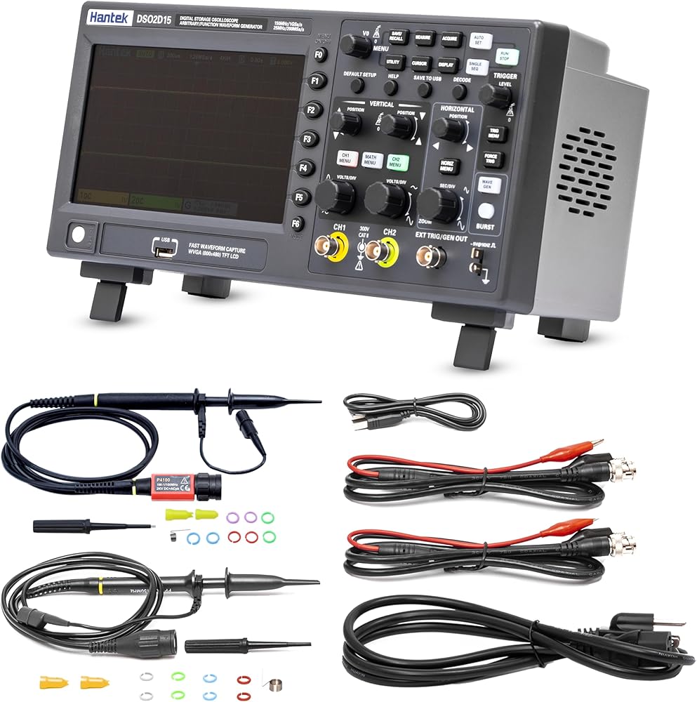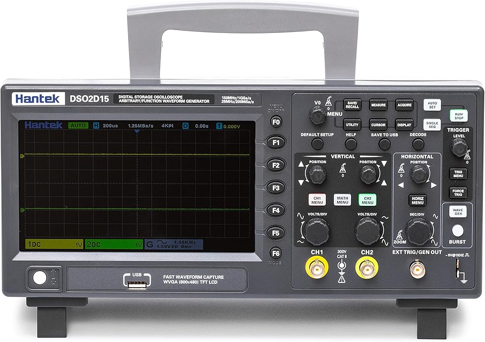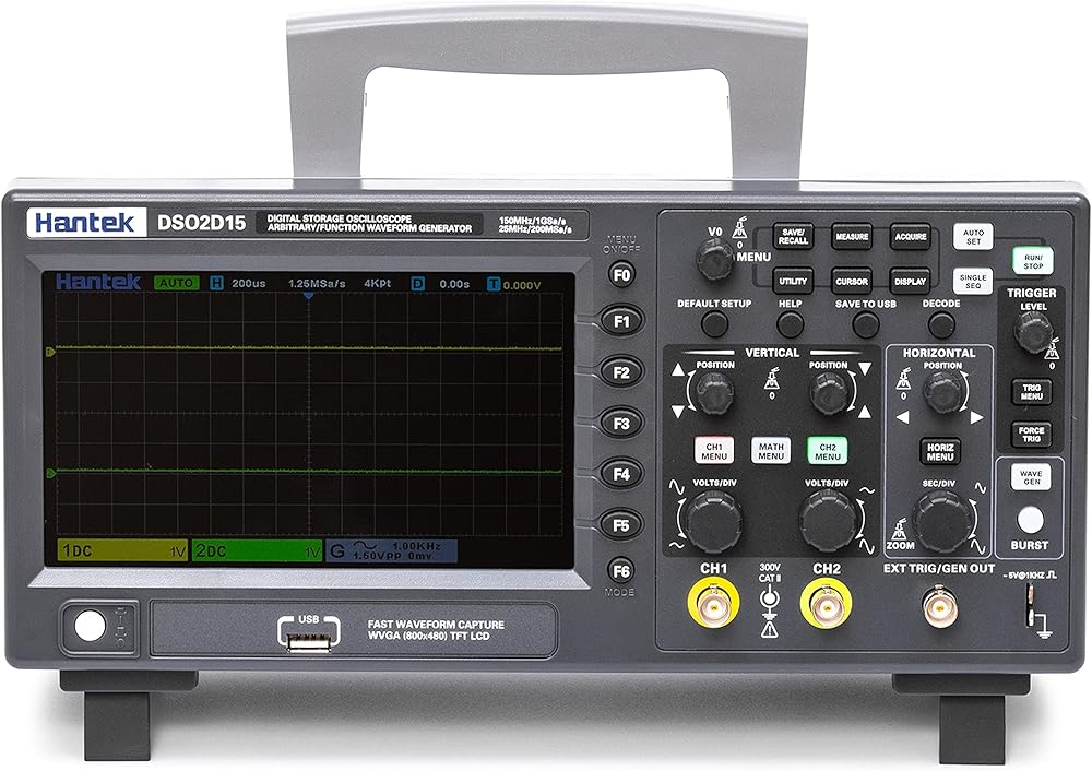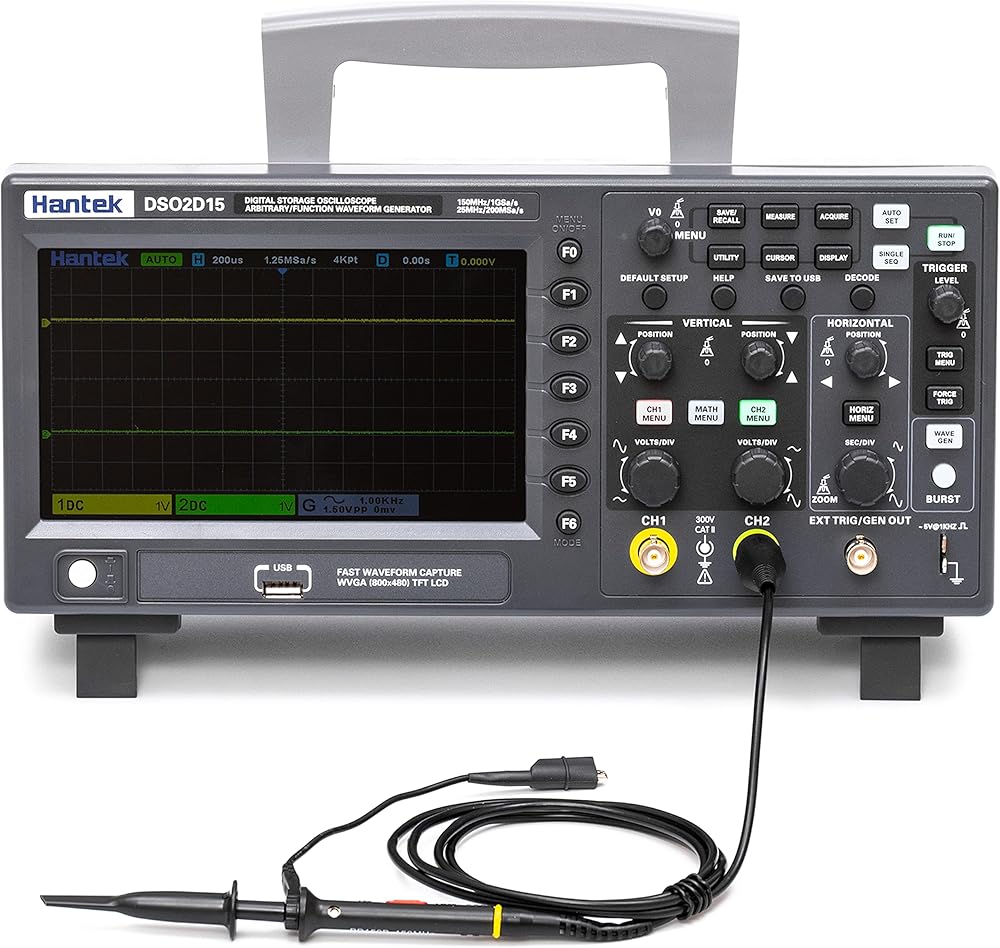 Hantek DSO2D15 راسم الذبذبات لمختبر التخزين الرقمي 150 ميجا هرتز عرض النطاق الترددي 2CH ثنائي القناة 1GSa/s عمق الذاكرة 8 متر مع مولد الموجي 1CH