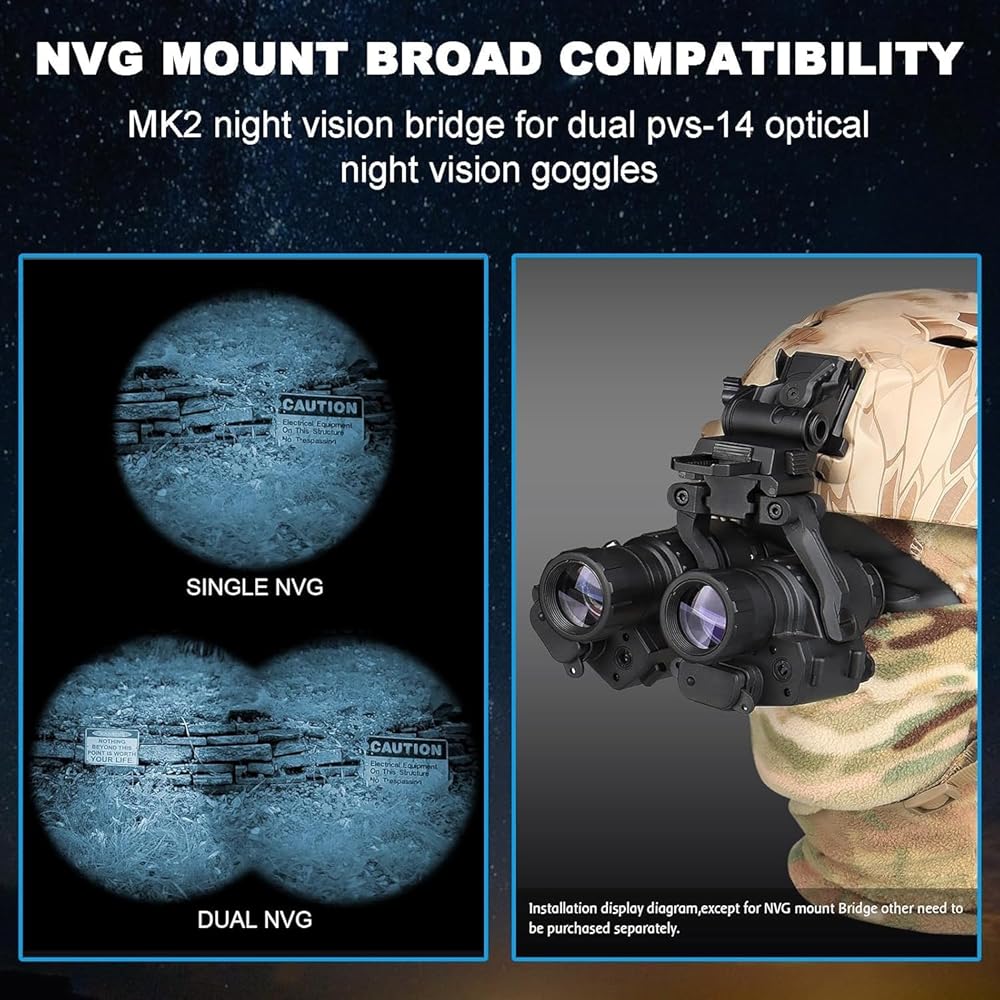 تصميم ذراع J مزدوج - يمكن لحامل NVG أن يدعم نظارتين للرؤية الليلية PVS-14 في نفس الوقت، مما يوفر مجال رؤية أوسع وتأثيرات تصوير أكثر وضوحًا