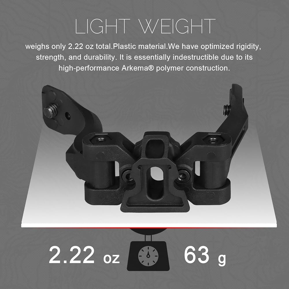 مادة بلاستيكية متينة - تم تصميم حامل الجسر NVG القابل للتعديل من مادة بلاستيكية خفيفة الوزن وعالية المتانة. يزن الدعامة بأكملها 63 جرامًا فقط، مما يسهل حملها ويتحمل التآكل الناتج عن الاستخدام اليومي دون أن يتلف بسهولة.