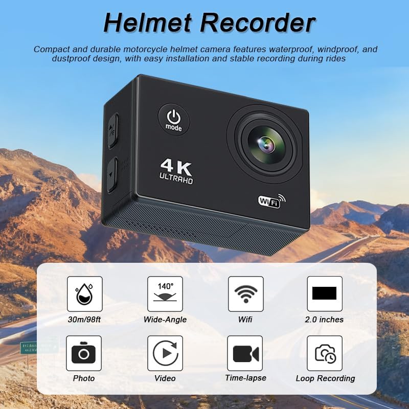 • 🌍【Versatile Use】Beyond everyday commuting, this helmet action camera adapts to various activities such as city travel, touring, and leisure riding. It is also suitable for outdoor sports or short trips, allowing users to capture moments in different ways. The helmet action camera provides practical recording functions, making it a useful option for different scenarios