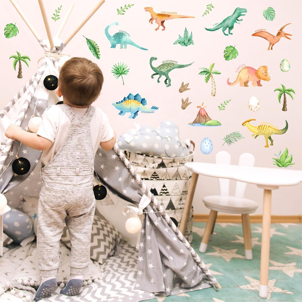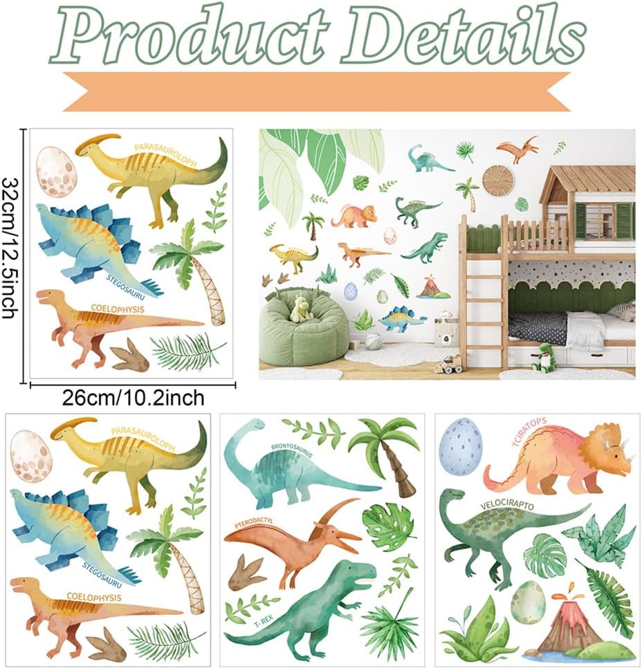 Customized Creative Design: The pattern of dinosaurs wall stickers adopts popular design, playful shapes and bright colors. Choose your favorite style to mix and match, stimulate imagination, or create a unique spatial style, making personality shine!