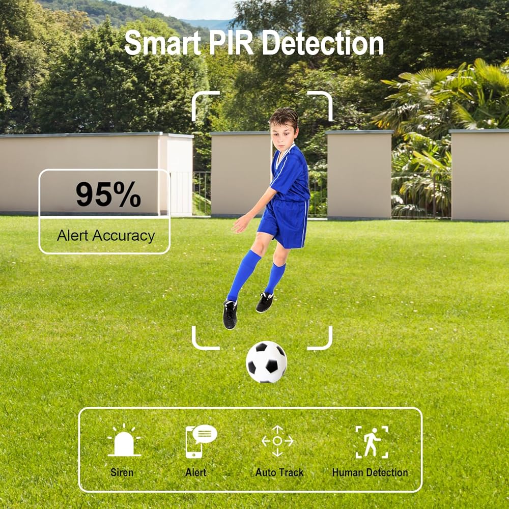 Enhanced Motion Detection and Auto Tracking: Security camera outdoor wireless is designed with intelligent motion detection capabilities, allowing it to accurately detect any movement in its designated area.Additionally, the auto-tracking feature ensures that the camera follows moving objects, providing you with comprehensive coverage and peace of mind.
