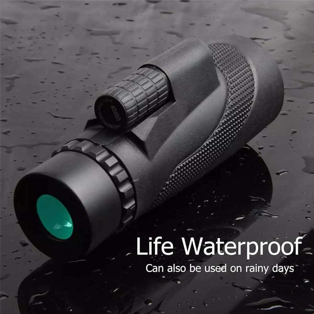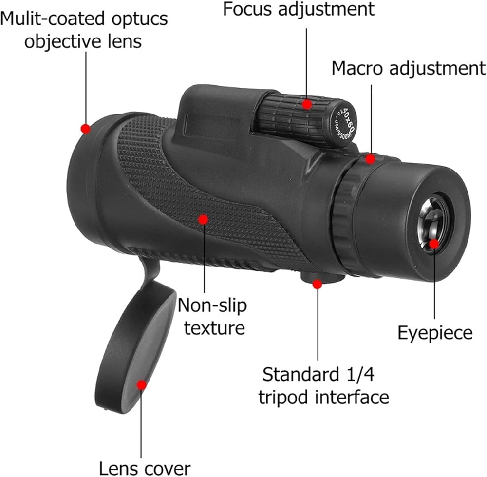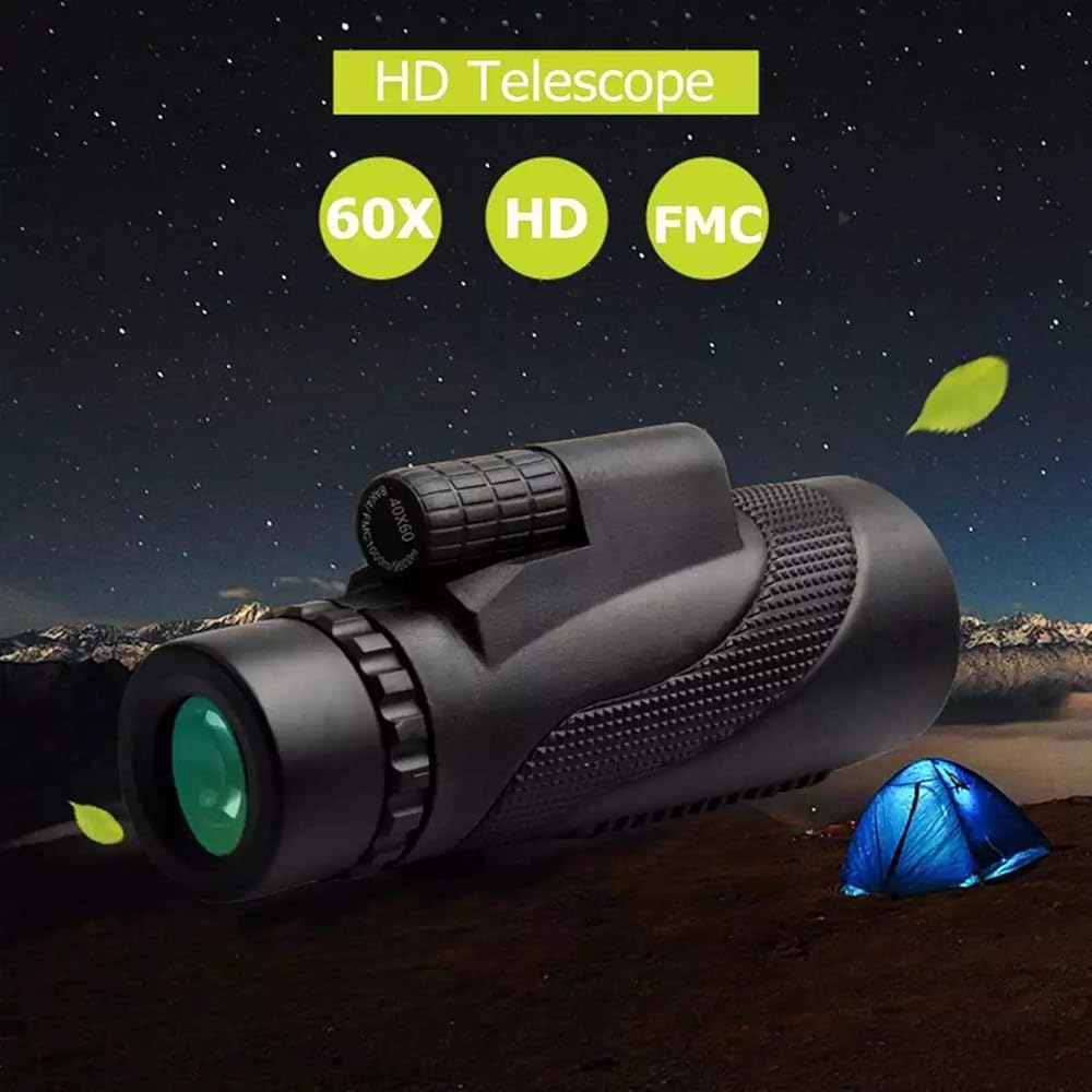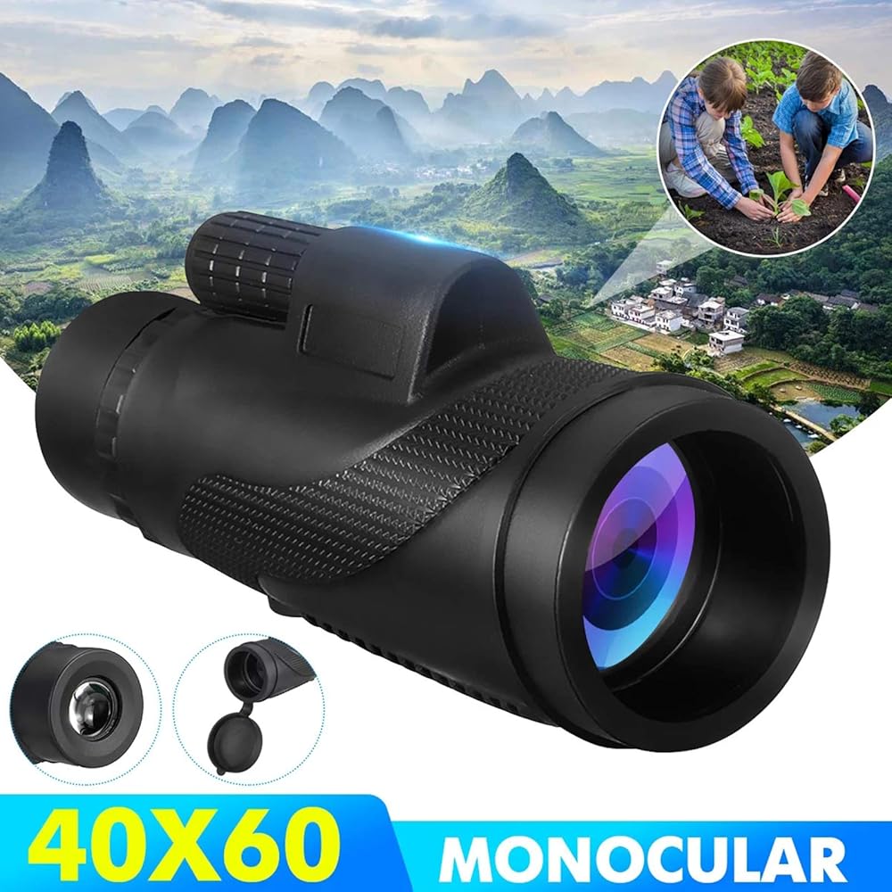 • 40X60 HIGH PERFORMANCE MAGNIFICATION -- The 40x60 monocular telescope is made of high quality material. Large Bak-4 prisms are coated with a purely optical multi-layer broadband green film. The high light transmission reaches up to 99.5%