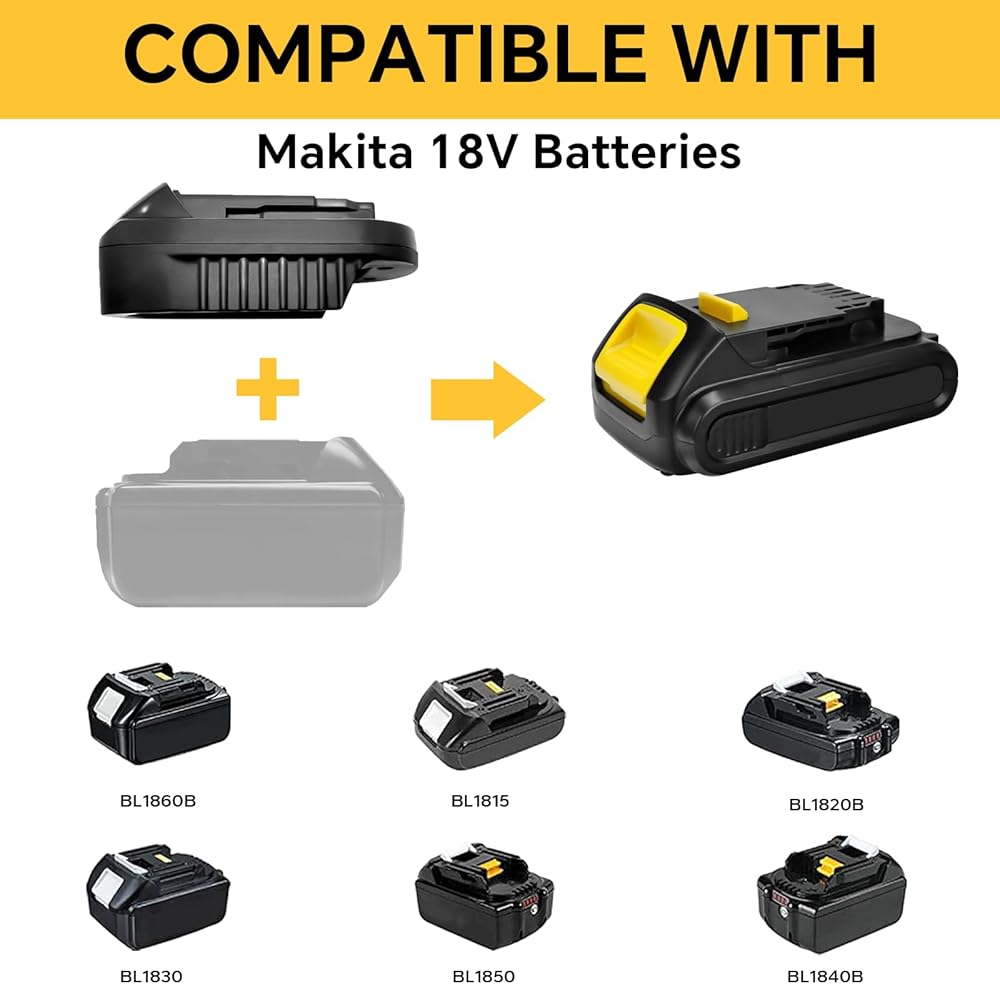 • يمكن لهذا المحول أن يجعل بطاريات الليثيوم المشار إليها مستخدمة في أدوات طاقة الليثيوم اللاسلكية Dewalt 18V 20V MAX لـ DeWalt DCB205، DCB200، DCB206، DCB206-2، DCB204، DCB204BT-2، DCB203، DCB201