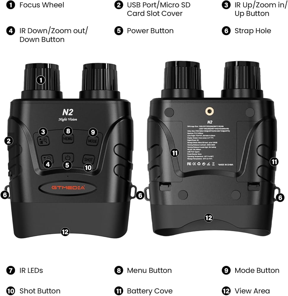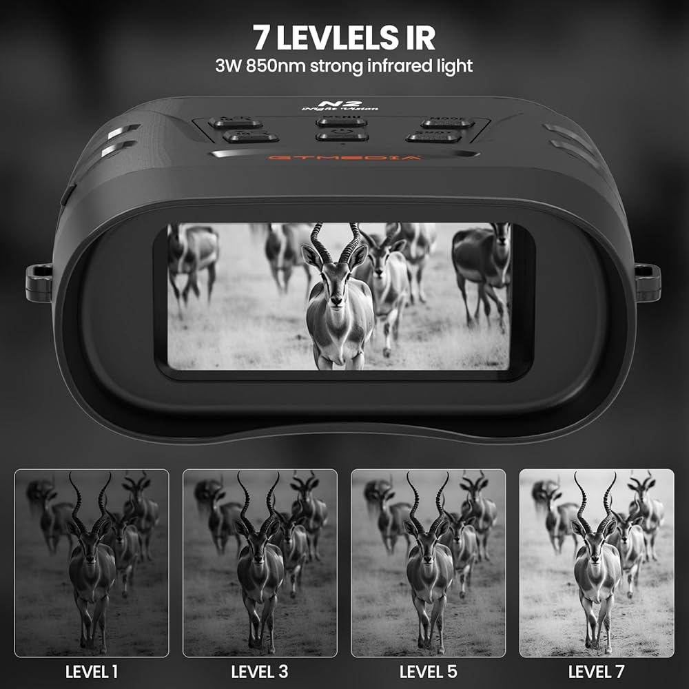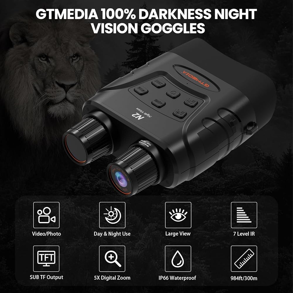 تسجيل فيديو عالي الدقة 1080 بكسل: نظارات رؤية ليلية قابلة لإعادة الشحن في وضع الاستعداد لمدة 6 ساعات في وضع الأشعة تحت الحمراء و13 ساعة في وضع غير الأشعة تحت الحمراء. تقوم بطاقة الذاكرة 32 جيجا بتخزين آلاف الصور ومقاطع الفيديو، ويمكن نقلها بسهولة إلى جهاز كمبيوتر باستخدام كابل USB المتضمن أو قارئ البطاقات لمشاركة اللحظات الجميلة مع العائلة والأصدقاء