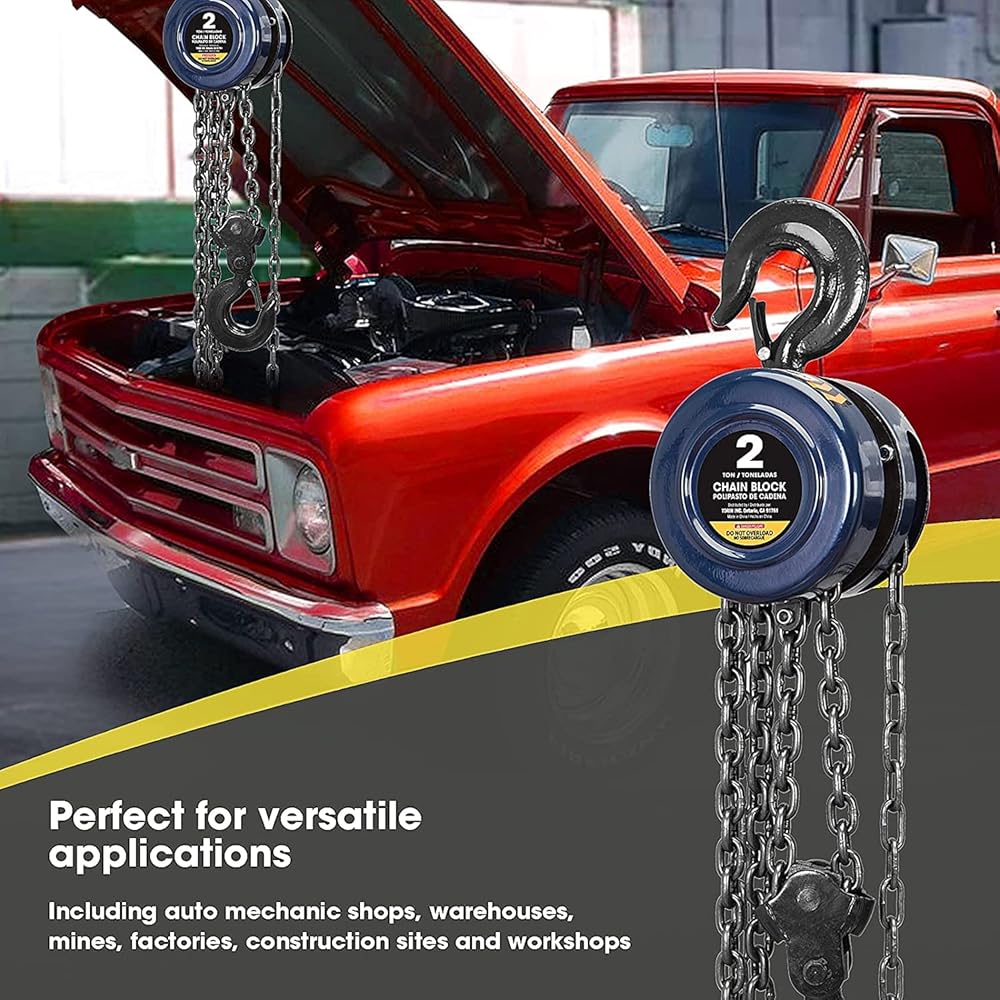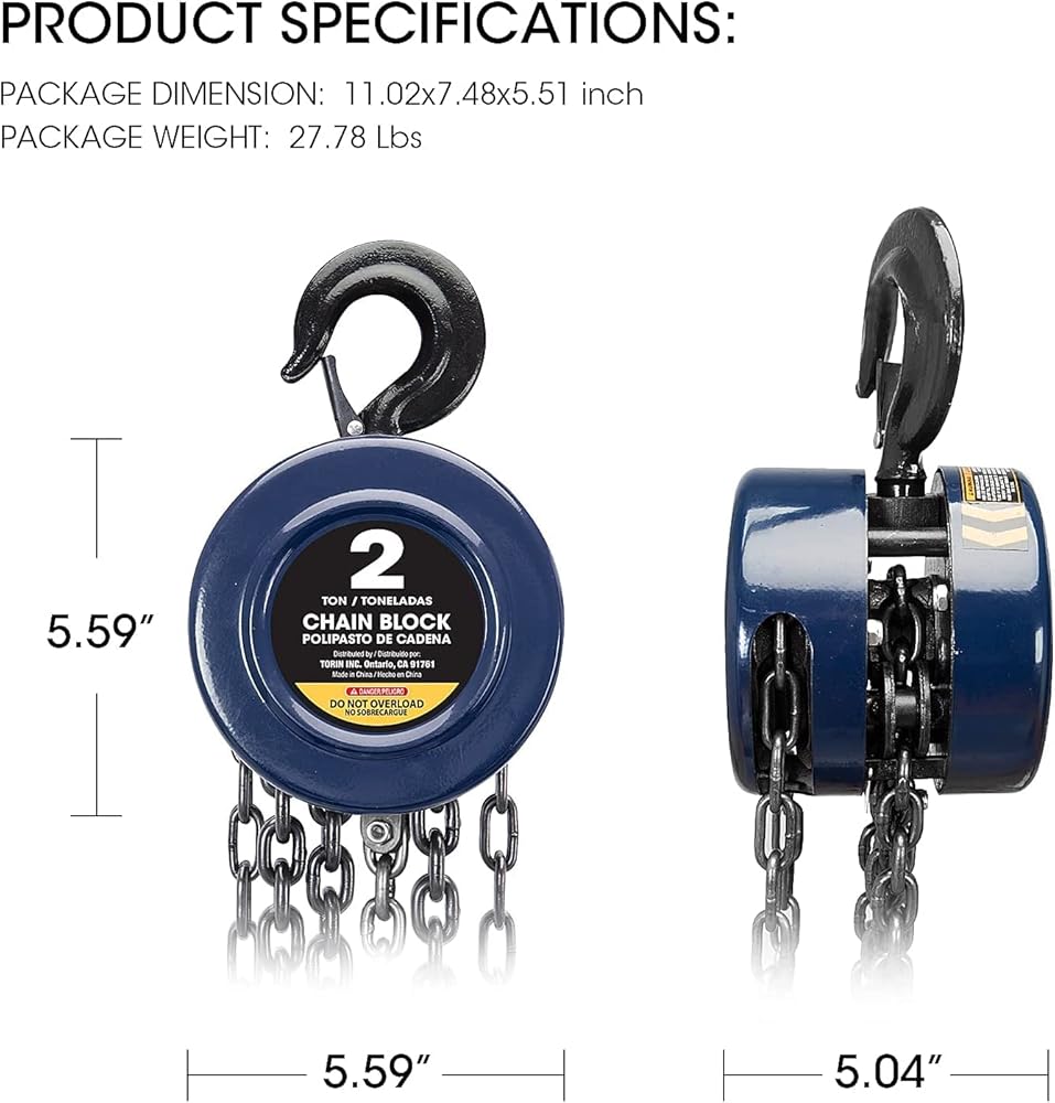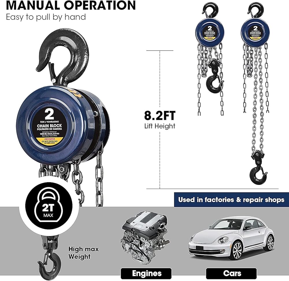 تتميز الرافعة اليدوية بسلسلة رفع يدوية بقدرة تحميل تبلغ 1 طن (2000 رطل) ومزودة بفرامل تحميل ميكانيكية تسمح بالتشغيل الدقيق