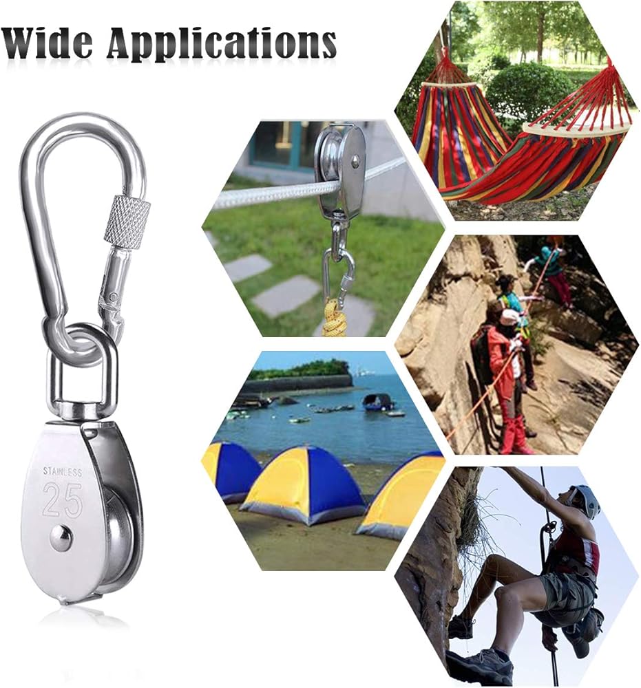 【استخدامات واسعة】- مجموعتنا الرائعة تعمل بشكل رائع كبكرة واحدة لرفع بكرة واحدة، وبكرة رفع من الفولاذ المقاوم للصدأ 304، وبكرة الجر، وبكرة العبور، وهي مثالية لحقيبة الظهر، وحلقة المفاتيح، والسلاسل، والحبال، والتخييم، والمشي لمسافات طويلة، وصيد الأسماك، والحيوانات الأليفة، وفي الأماكن المغلقة والمفتوحة. معدات المعدات، ملحقات DIY، اللياقة البدنية، عجلة التعليق، تسلق الجبال واللياقة البدنية الداخلية والخارجية، إلخ.