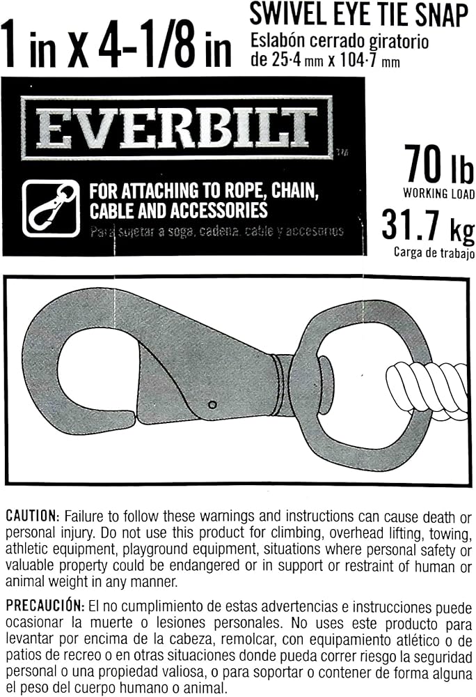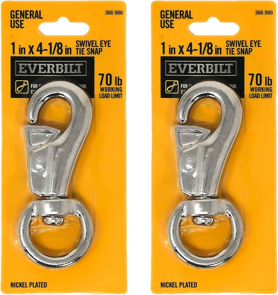 خطاف ربط دوار 4-1/8 انش (عبوة من قطعتين)، 70 باوند (70 باوند)، حد حمل العمل، خطاف سميك 1 انش مع طبقة خارجية مطلية بالنيكل، مثالي للاستخدام مع الحبال والسلاسل والأشرطة وسلاسل الحيوانات