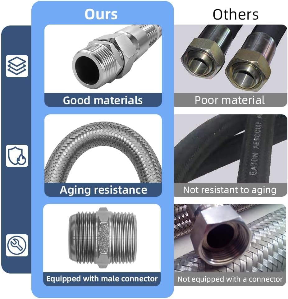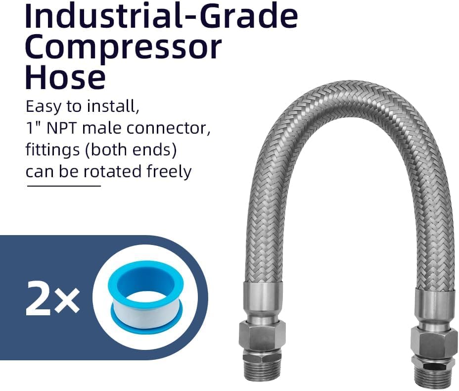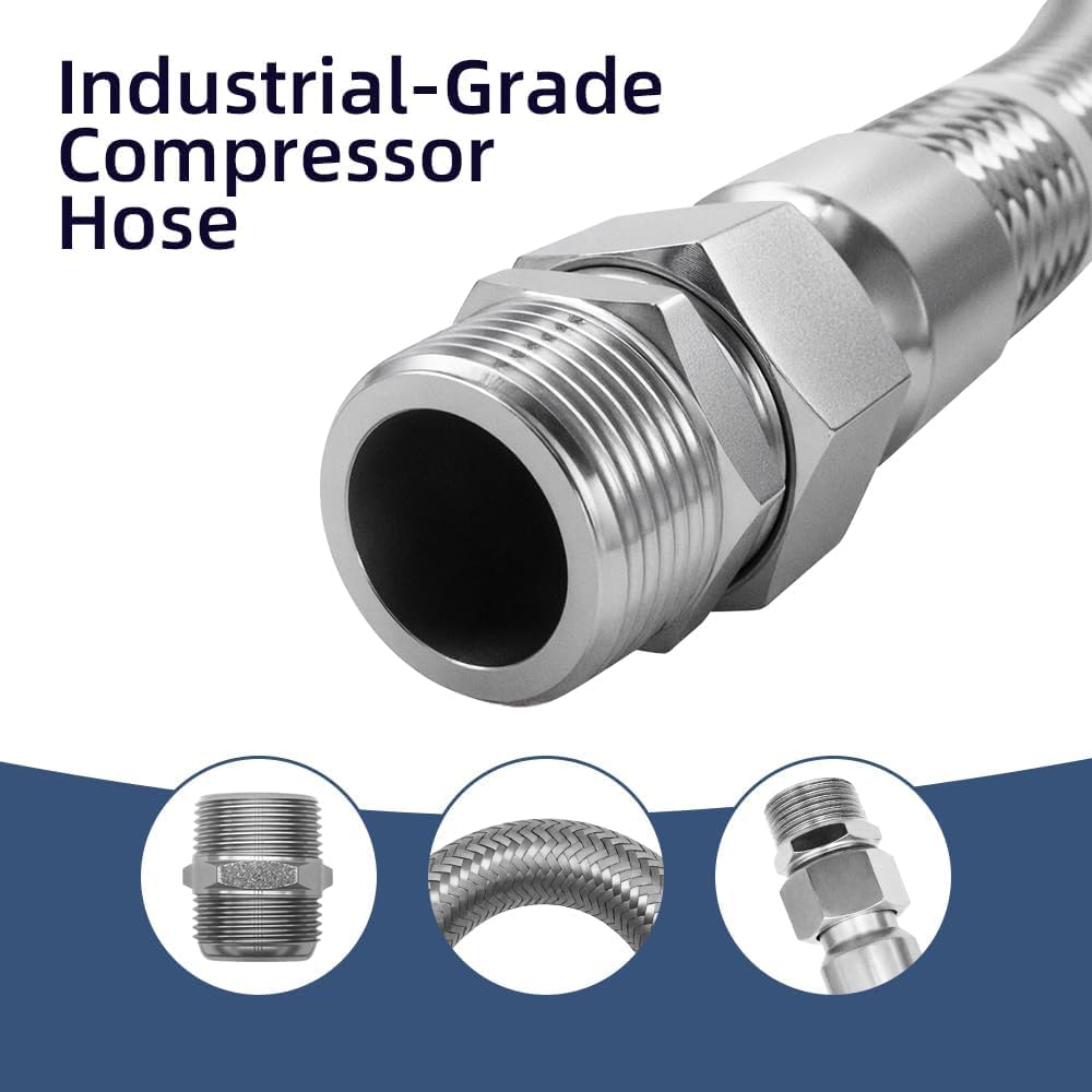 Air Compressor Hose - 2 layer structure design,stainless steel braided and stainless steel corrugated,stronger and long - lived.